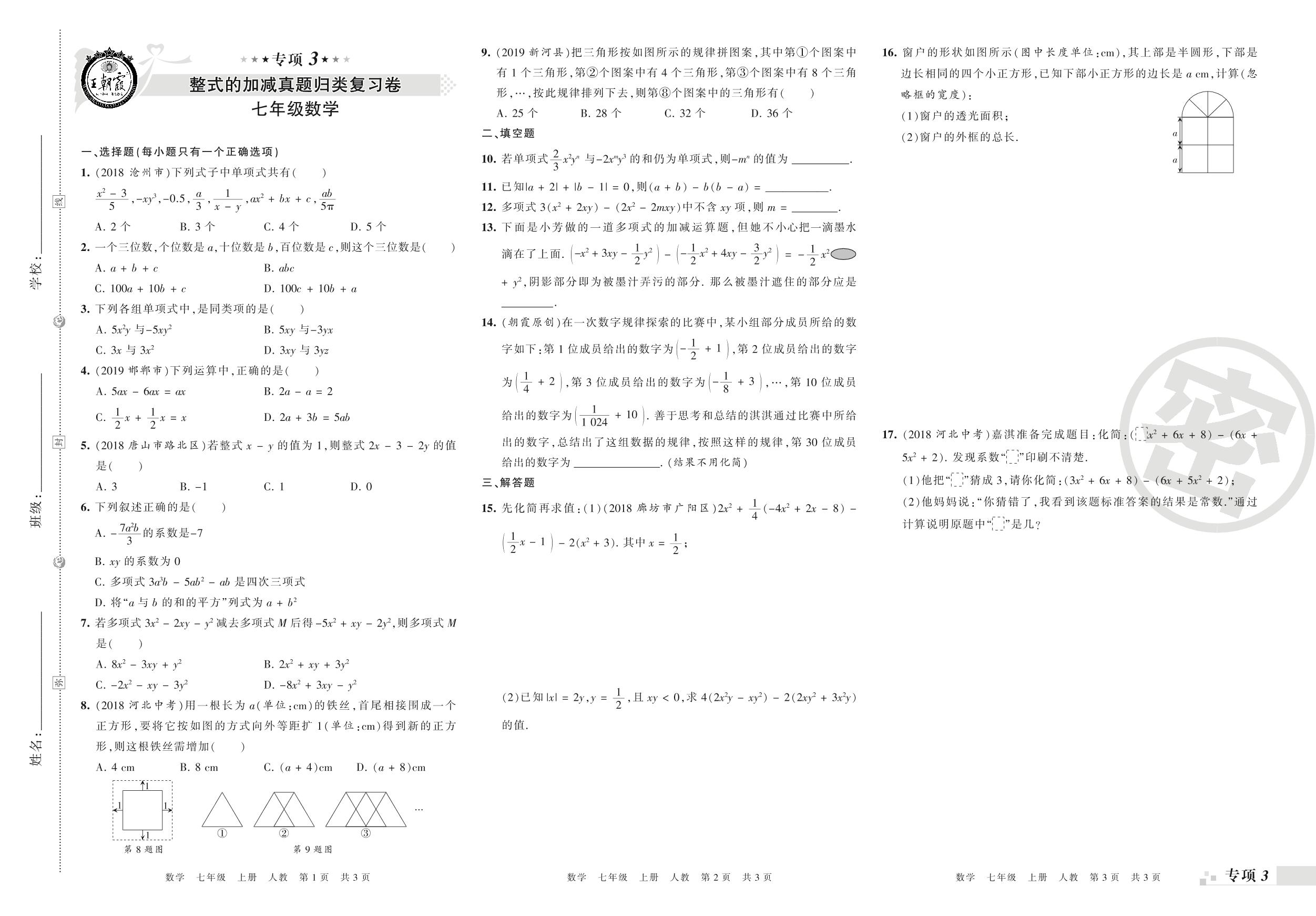 王朝霞期末专项卷——整式的加减、解一元一次方程真题归类复习七年级上册数学(人教版)_R210805160826【0】