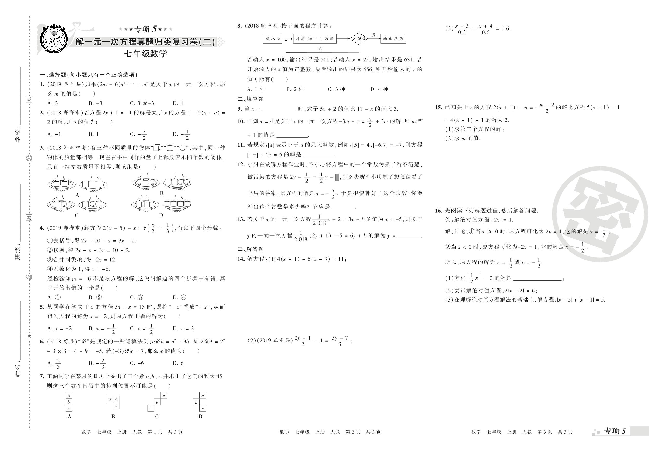 王朝霞期末专项卷——解一元一次方程、一元一次方程的应用真题归类复习七年级上册数学(人教版)_R210805160831【0】