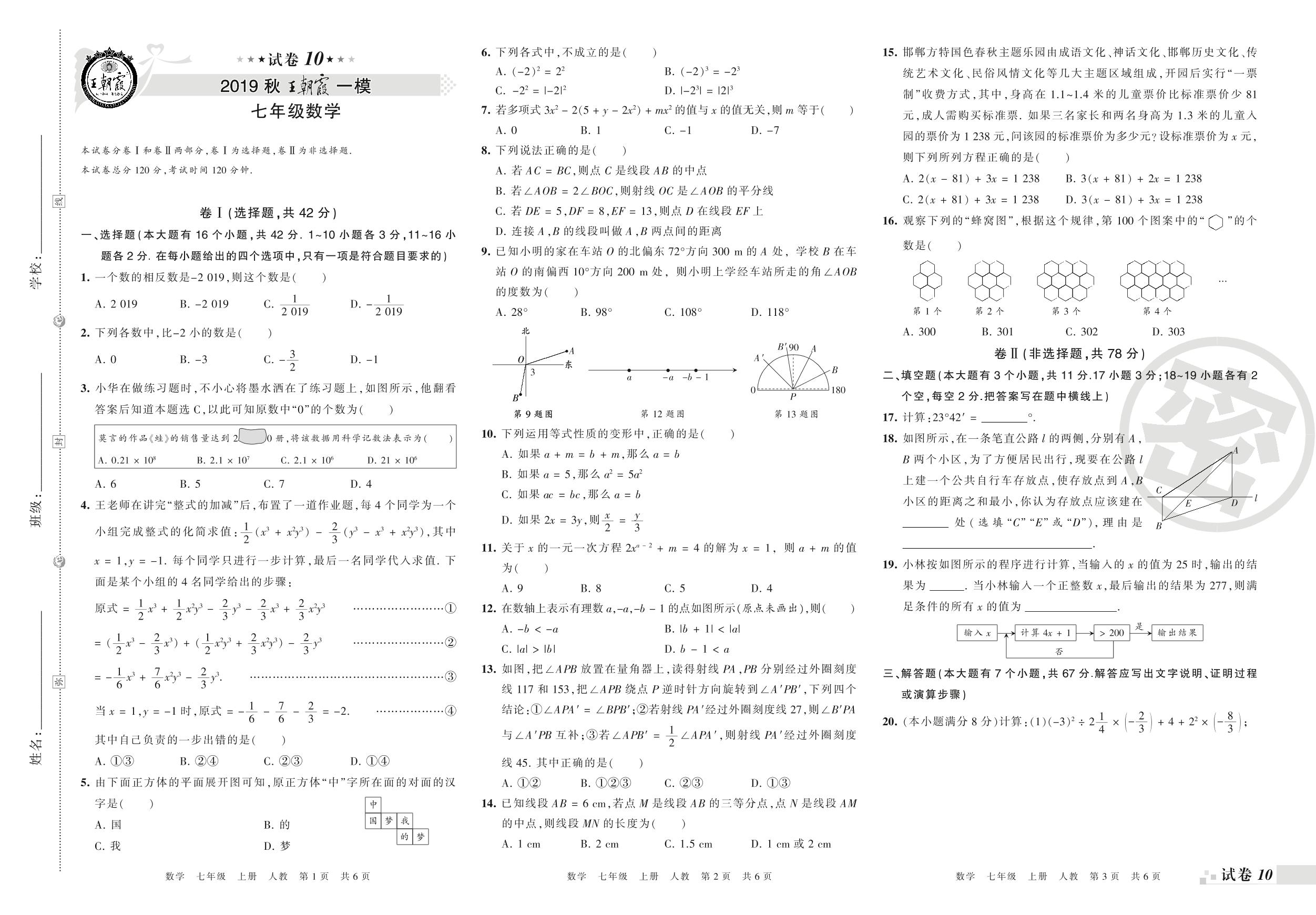 王朝霞期末模拟卷七年级上册数学(人教版)_R210805160915【10】