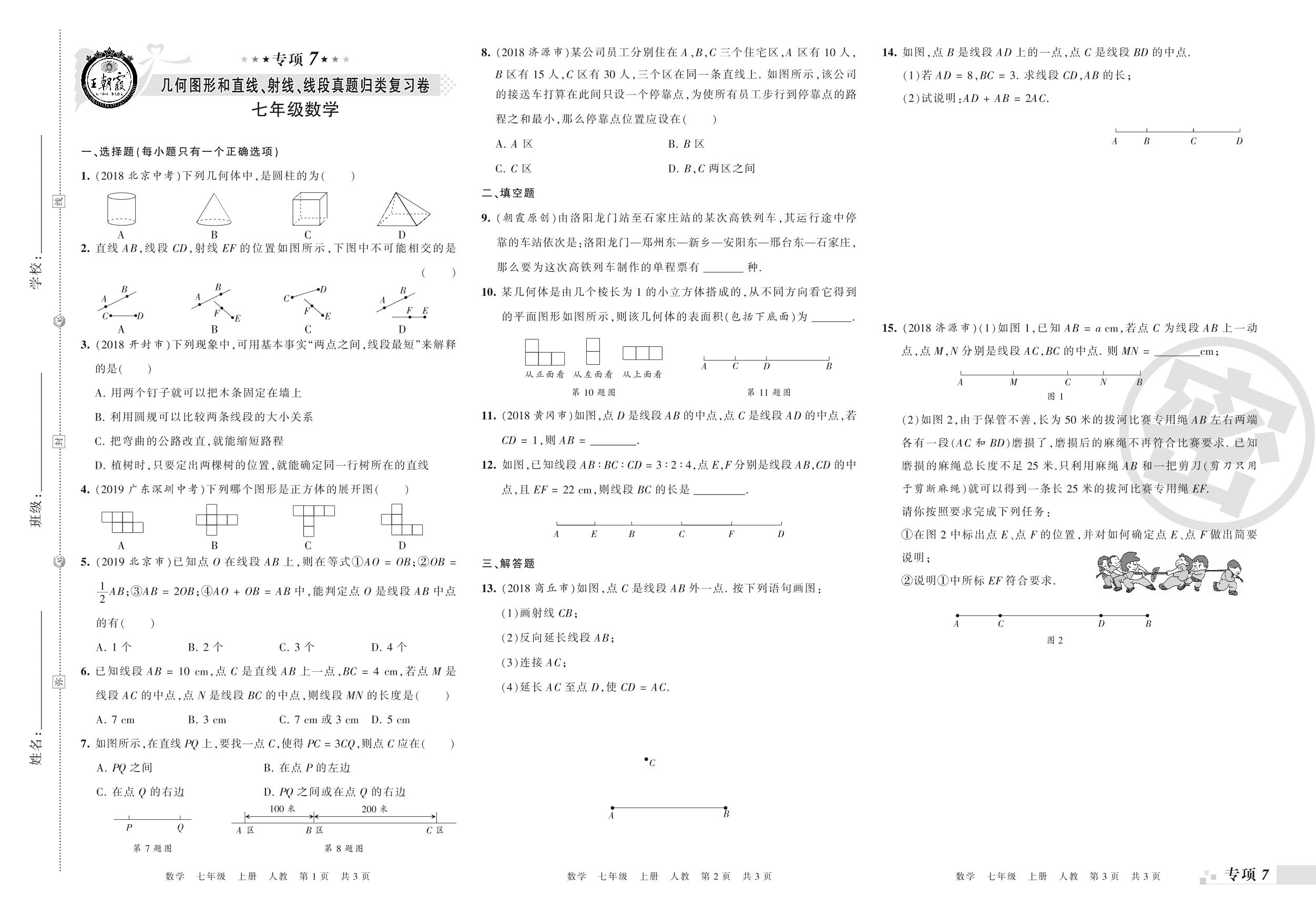 王朝霞期末专项卷——几何图形和直线、射线、限度、角真题归类复习七年级上册数学(人教版)_R210805160951【0】