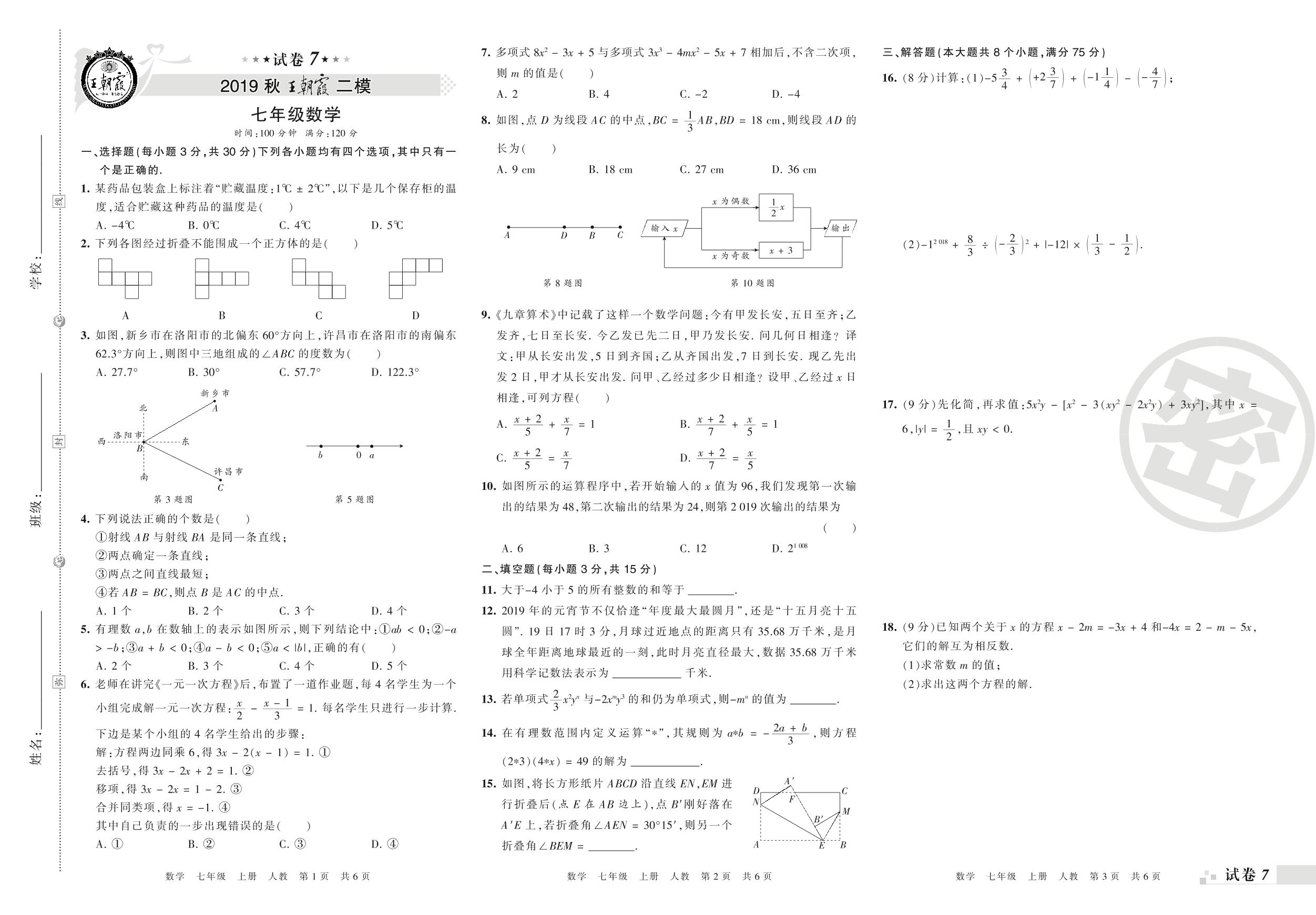 王朝霞期末模拟卷七年级上册数学(人教版)_R210805161022【7】