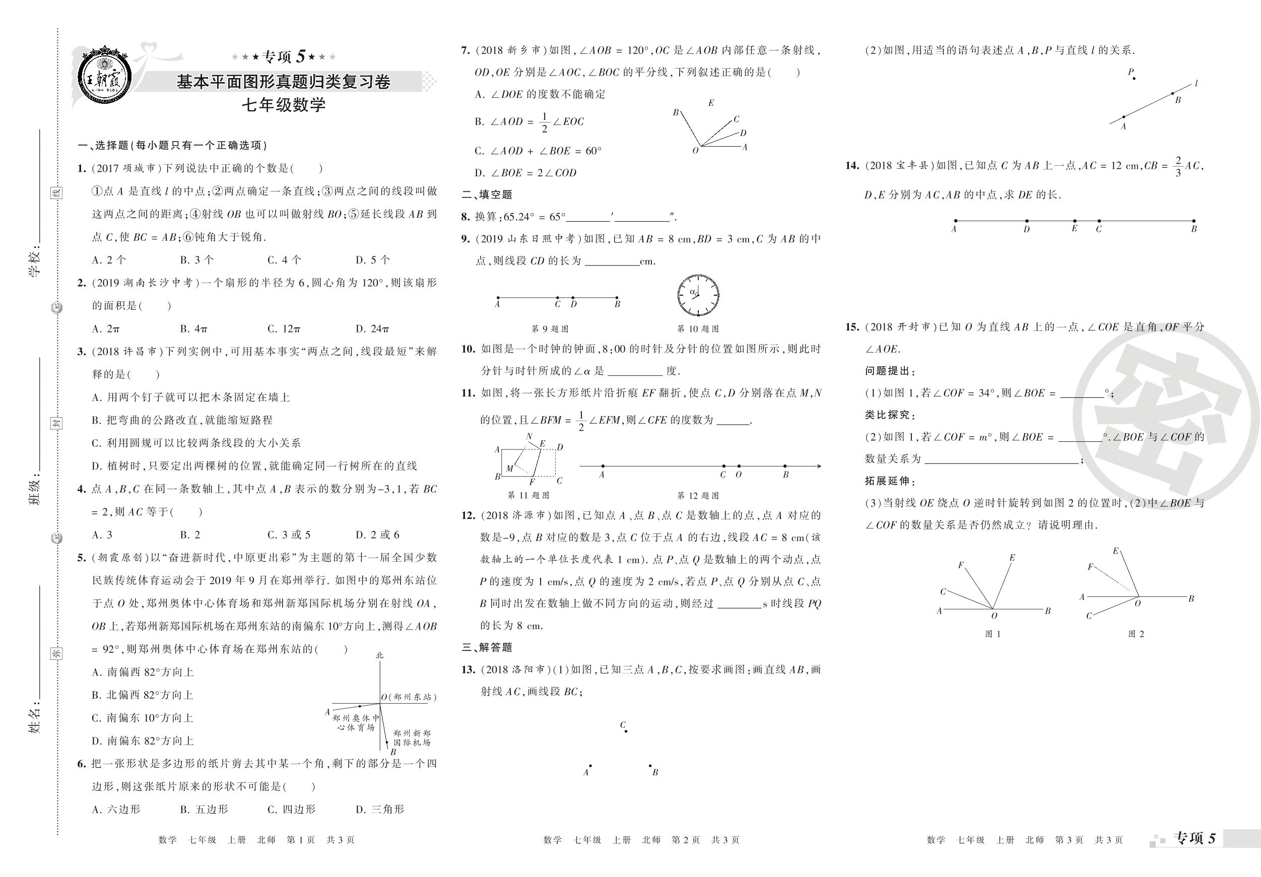 王朝霞期末专项卷——基本平面图形、一元一次方程的认识与解法真题归类复习七年级上册数学(北师版)_R210805161116【0】