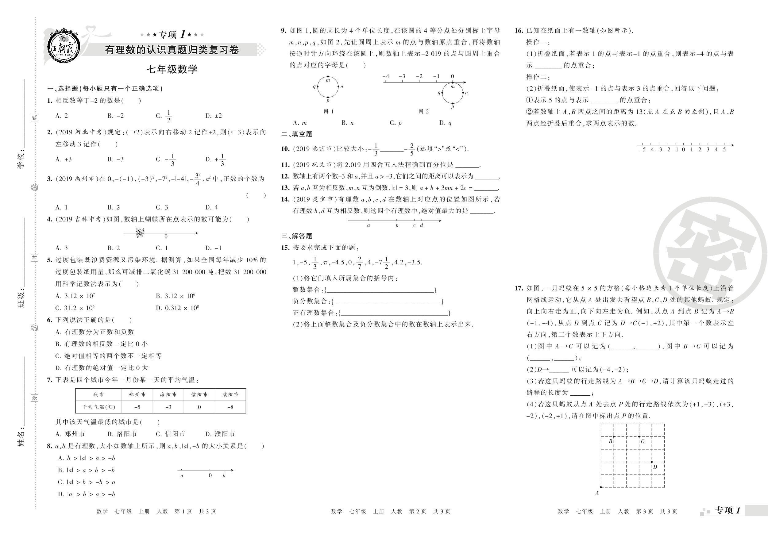 王朝霞期末专项卷——有理数的认识、有理数的运算真题归类复习七年级上册数学(人教版)_R210805161147【0】