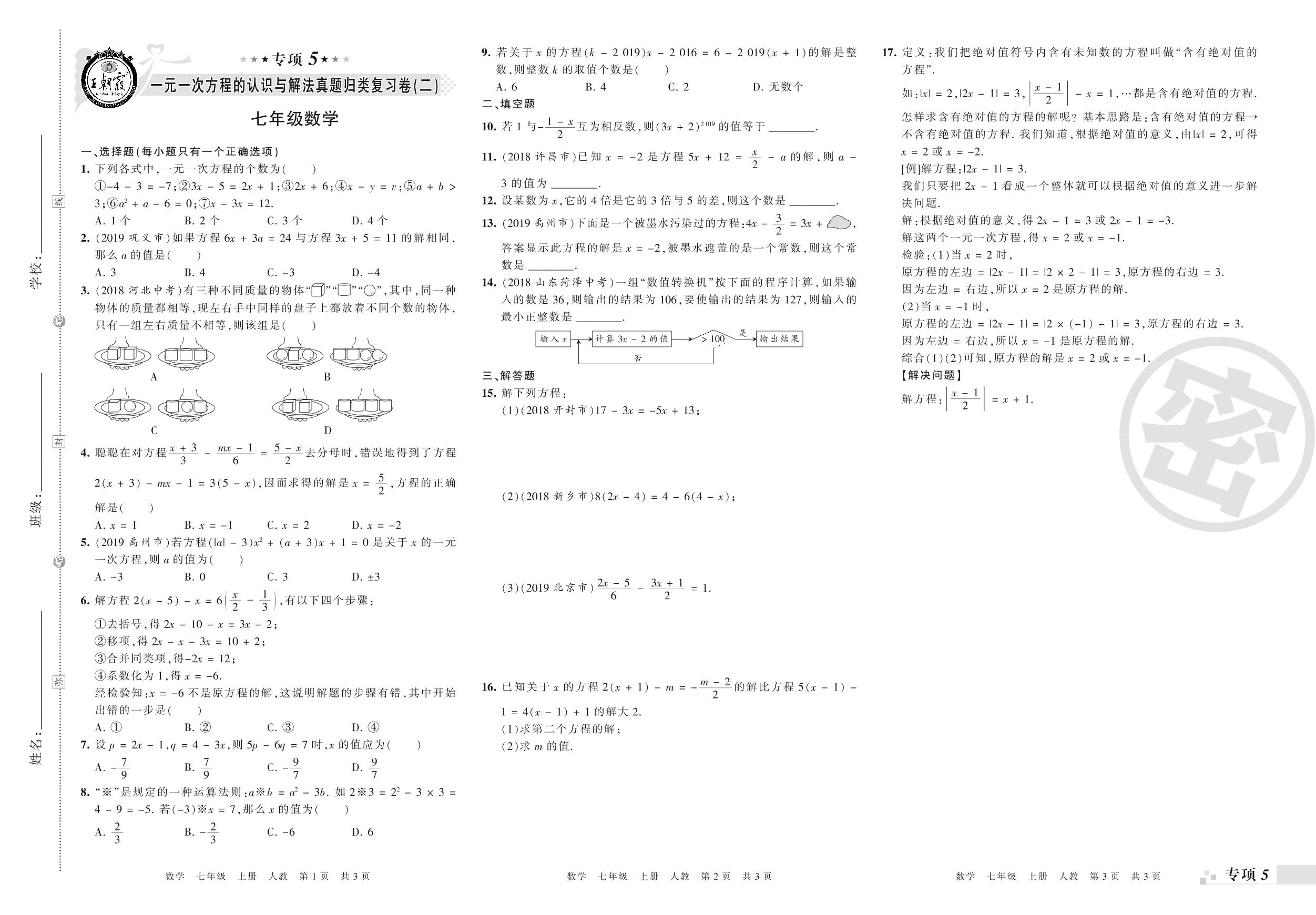 王朝霞期末专项卷——一元一次方程的认识与解法、一元一次方程的应用真题归类复习七年级上册数学(人教版)_R210805161154【0】