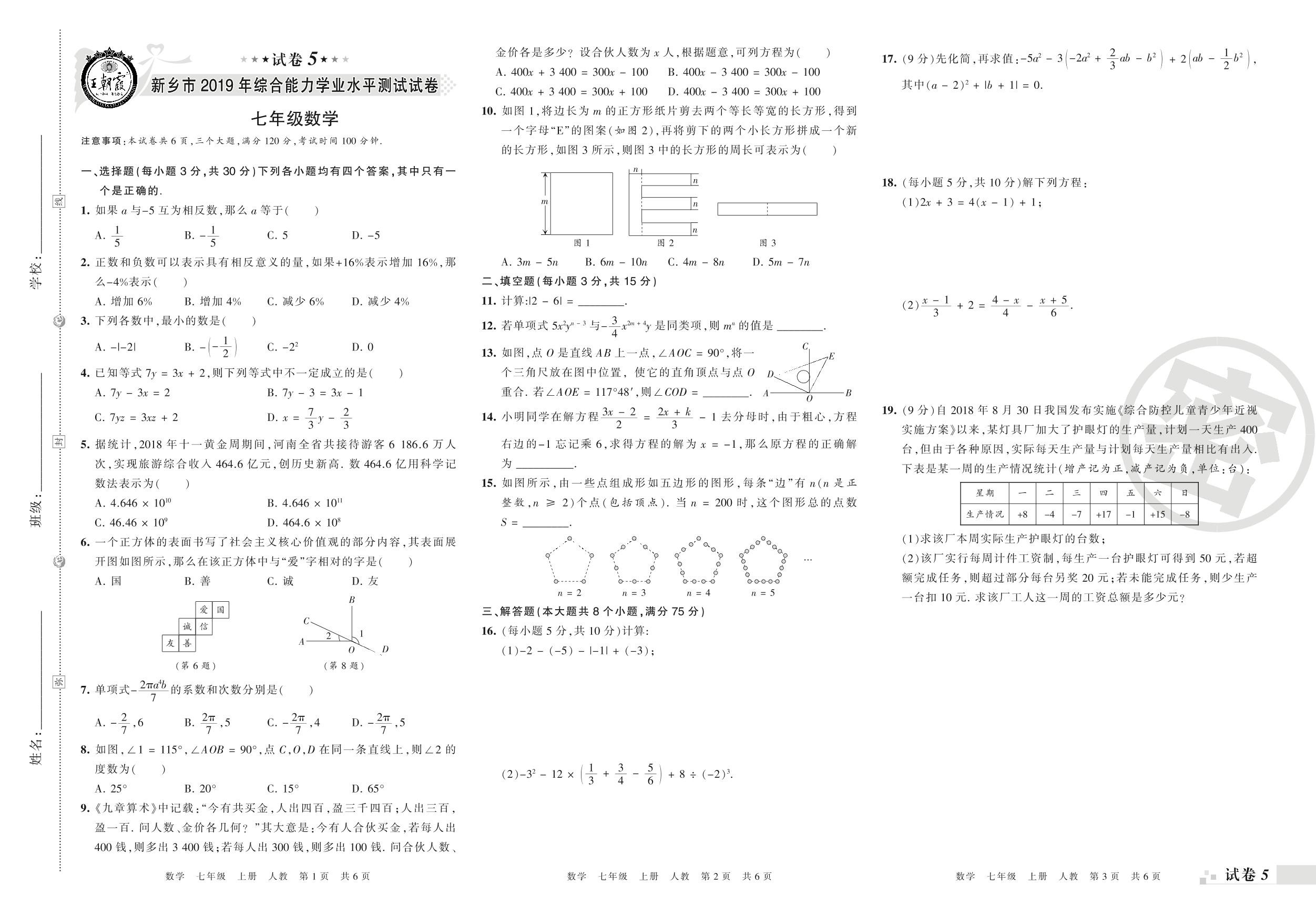 2018-2019学年第一学期新乡市七年级数学试卷(人教版)【5】