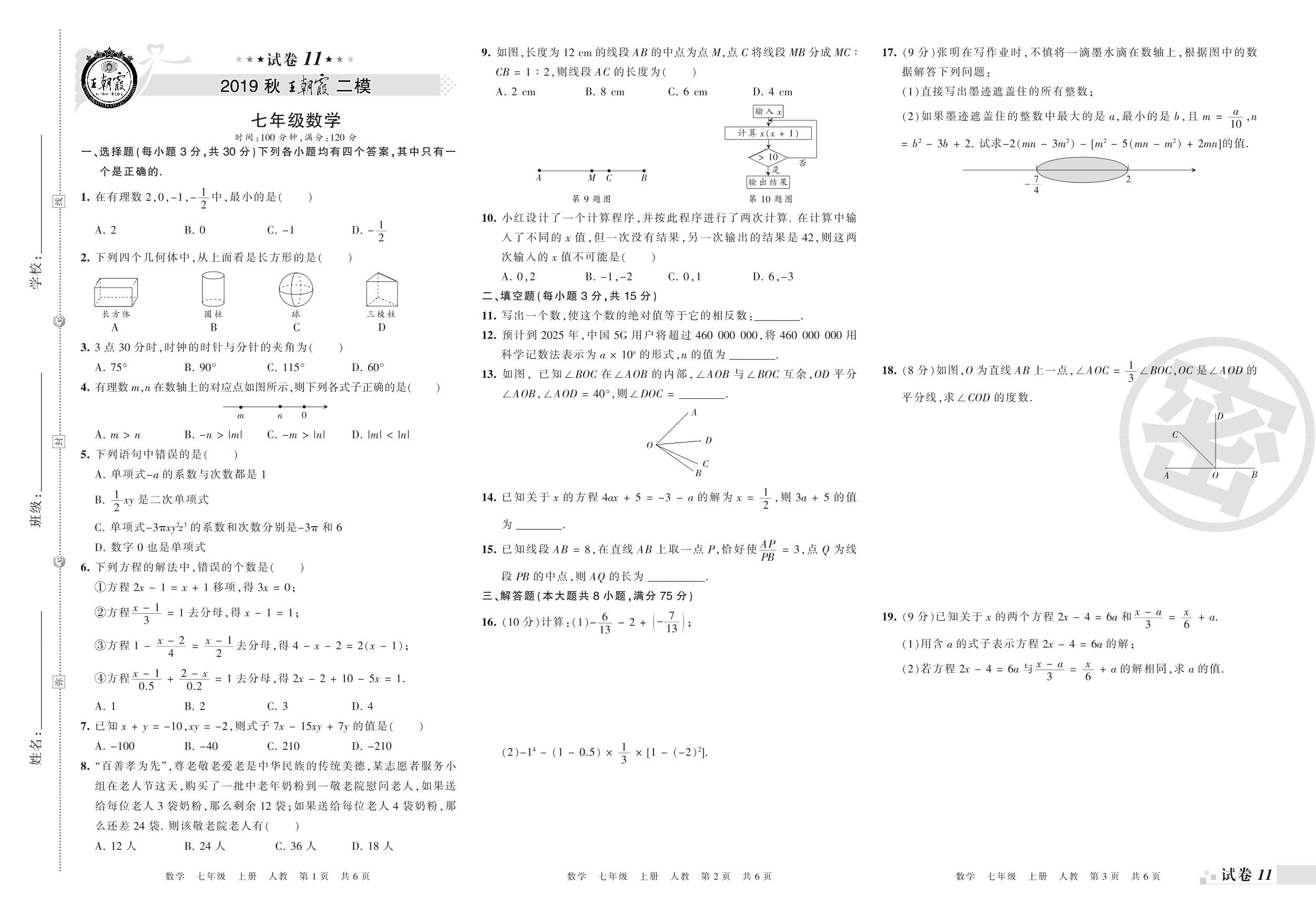 王朝霞期末模拟卷七年级上册数学(人教版)_R210805161243【11】