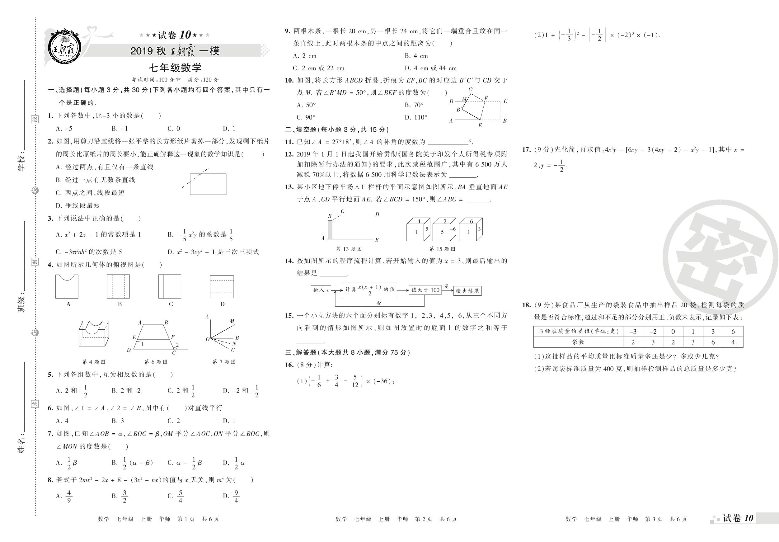 王朝霞期末模拟卷七年级上册数学(华师版)_R210805161339【10】