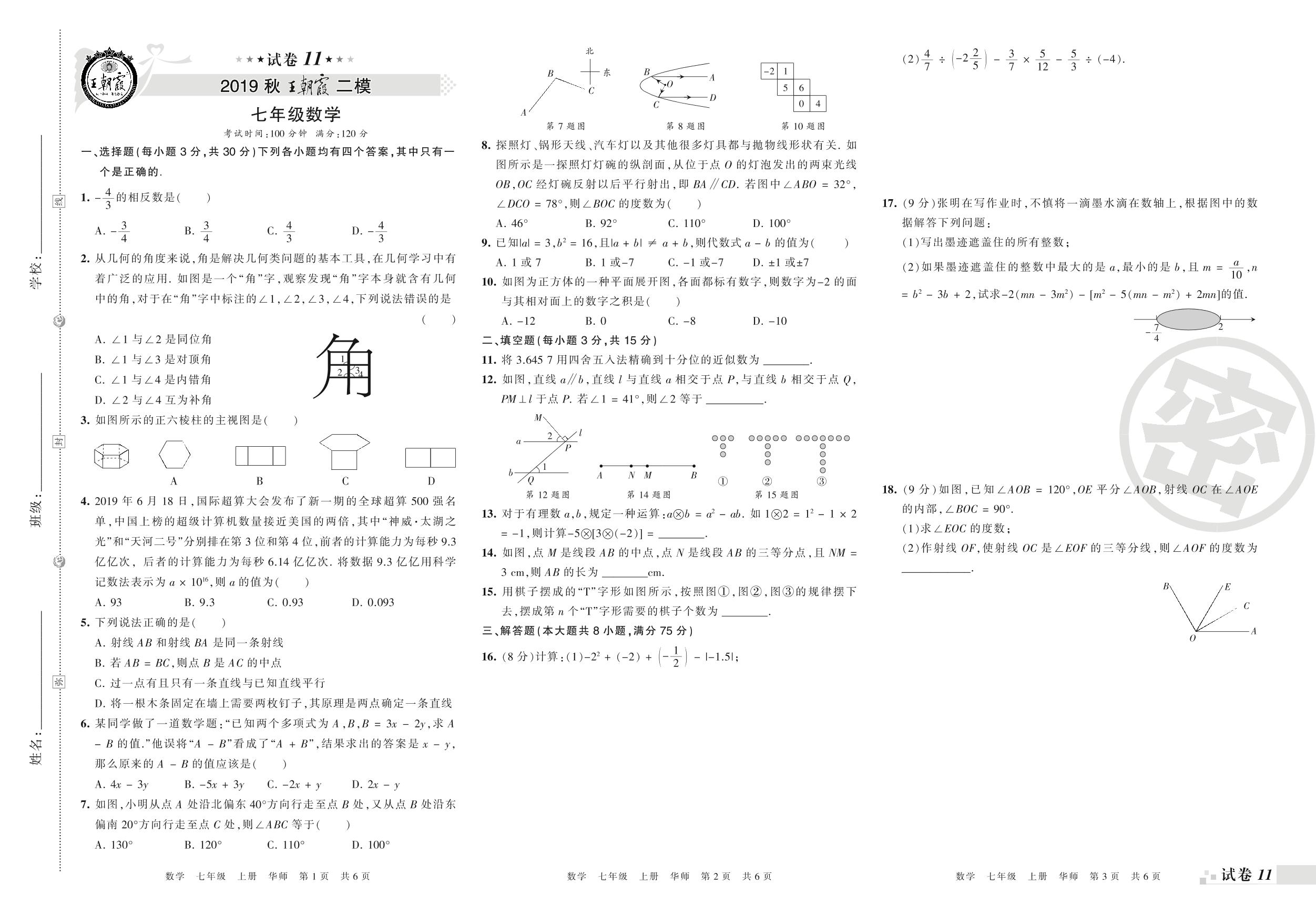 王朝霞期末模拟卷七年级上册数学(华师版)_R210805161344【11】