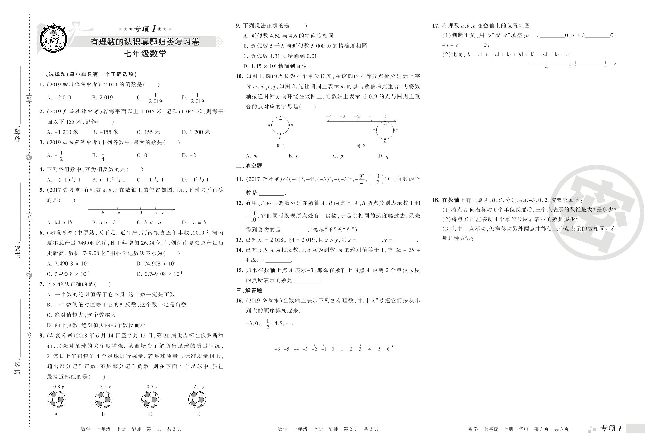 王朝霞期末专项卷——有理数的认识、有理数的运算真题归类复习七年级上册数学(华师版)_R210805161349【0】