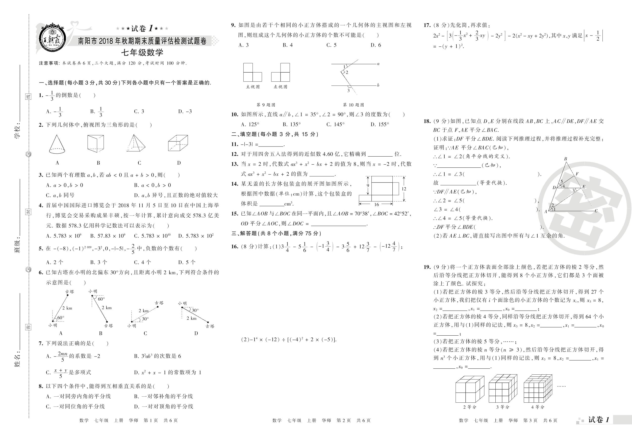 2018-2019学年第一学期南阳市七年级数学试卷(华师版)_R210805161437【1】