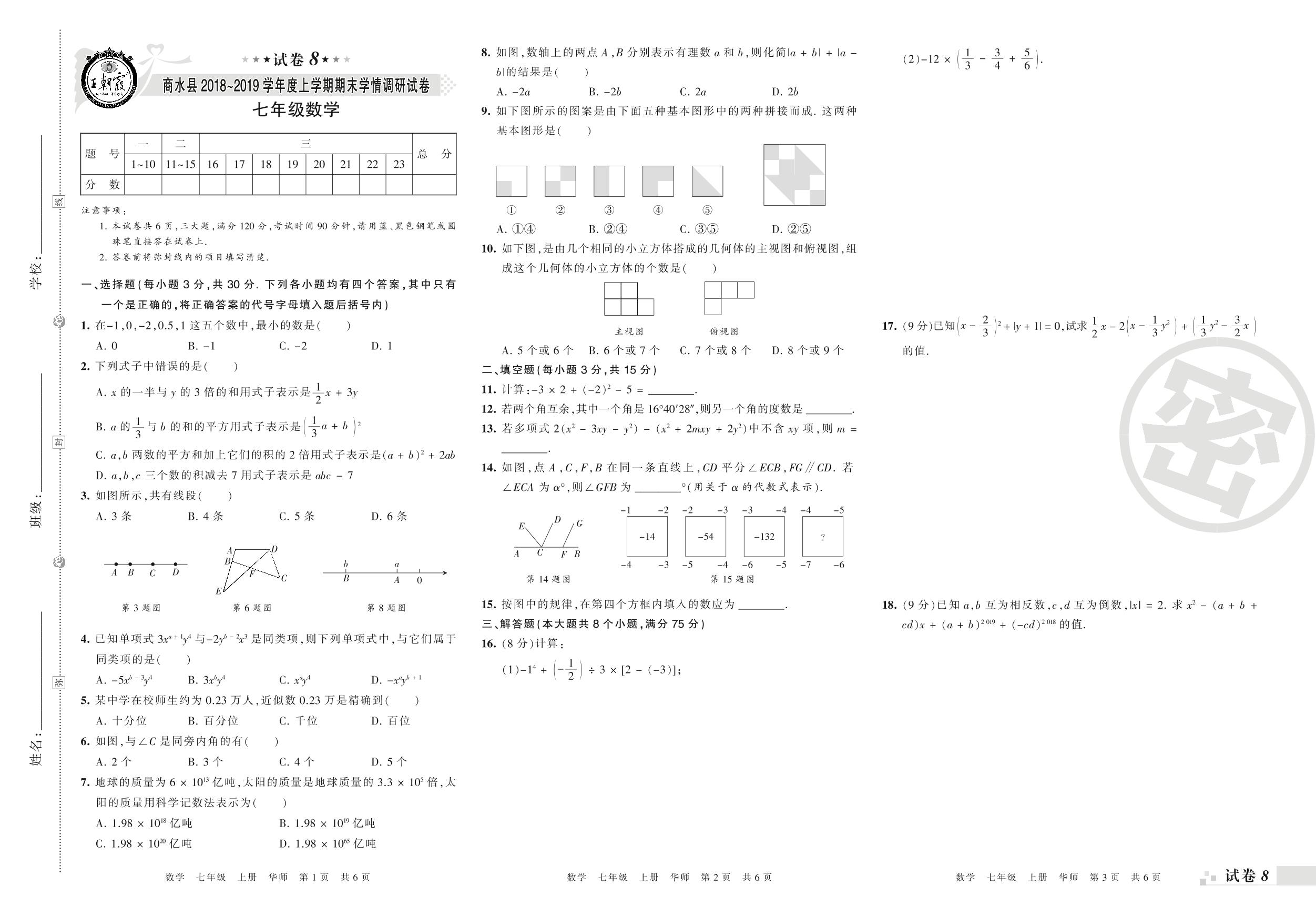 2018-2019学年第一学期周口市商水县七年级数学试卷(华师版)【8】