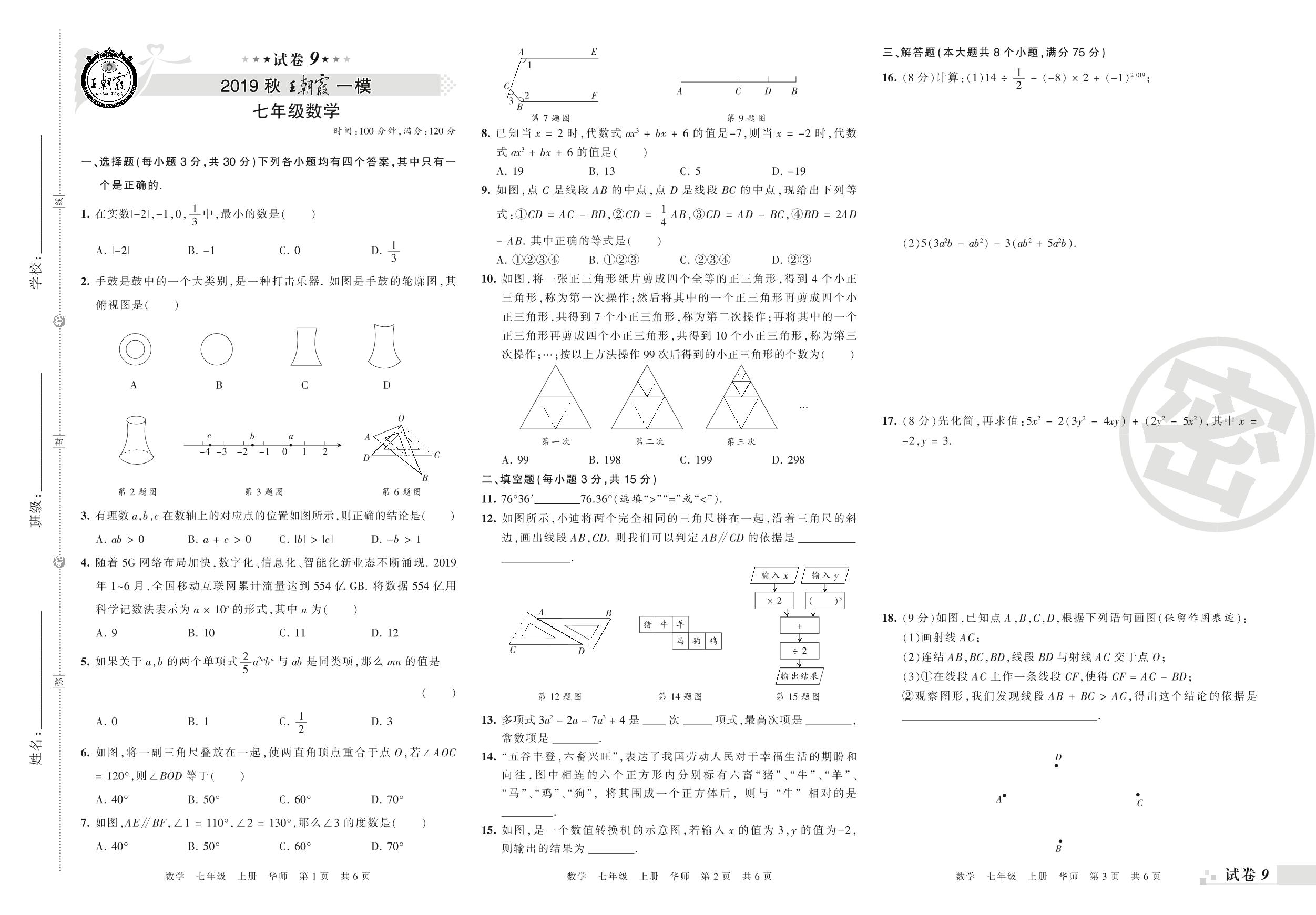 王朝霞期末模拟卷七年级上册数学(华师版)_R210805161543【9】
