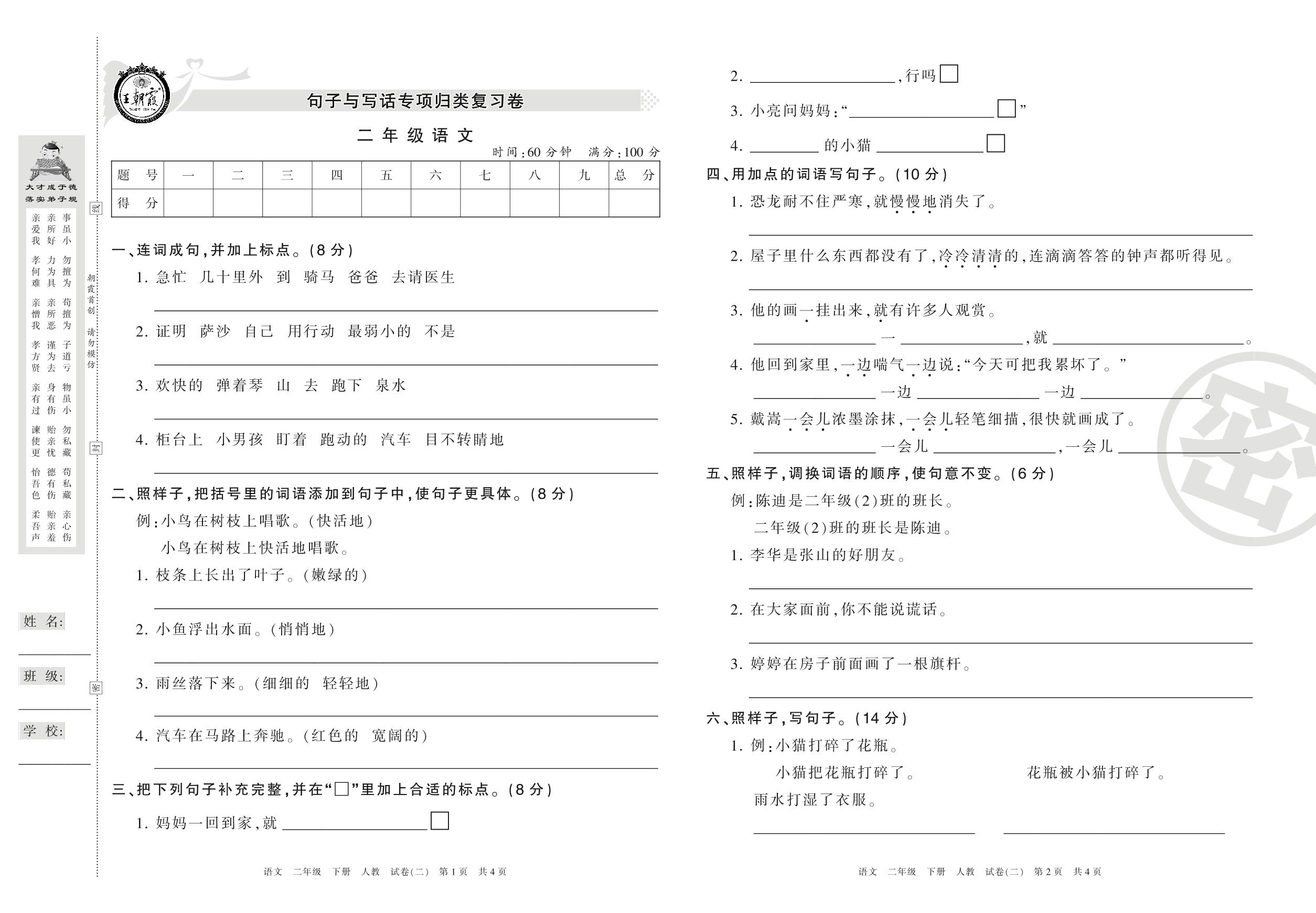 王朝霞期末专项卷二年级下册语文(人教版)_R21080173824【2】