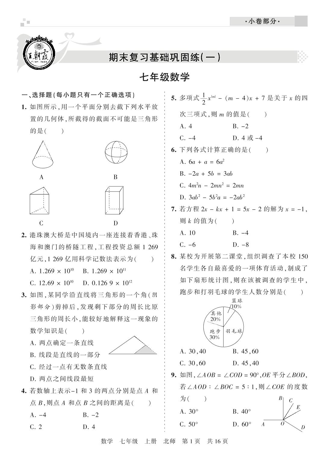 王朝霞期末小卷——期末复习基础巩固练七年级上册数学(北师版)_R210805161626【0】
