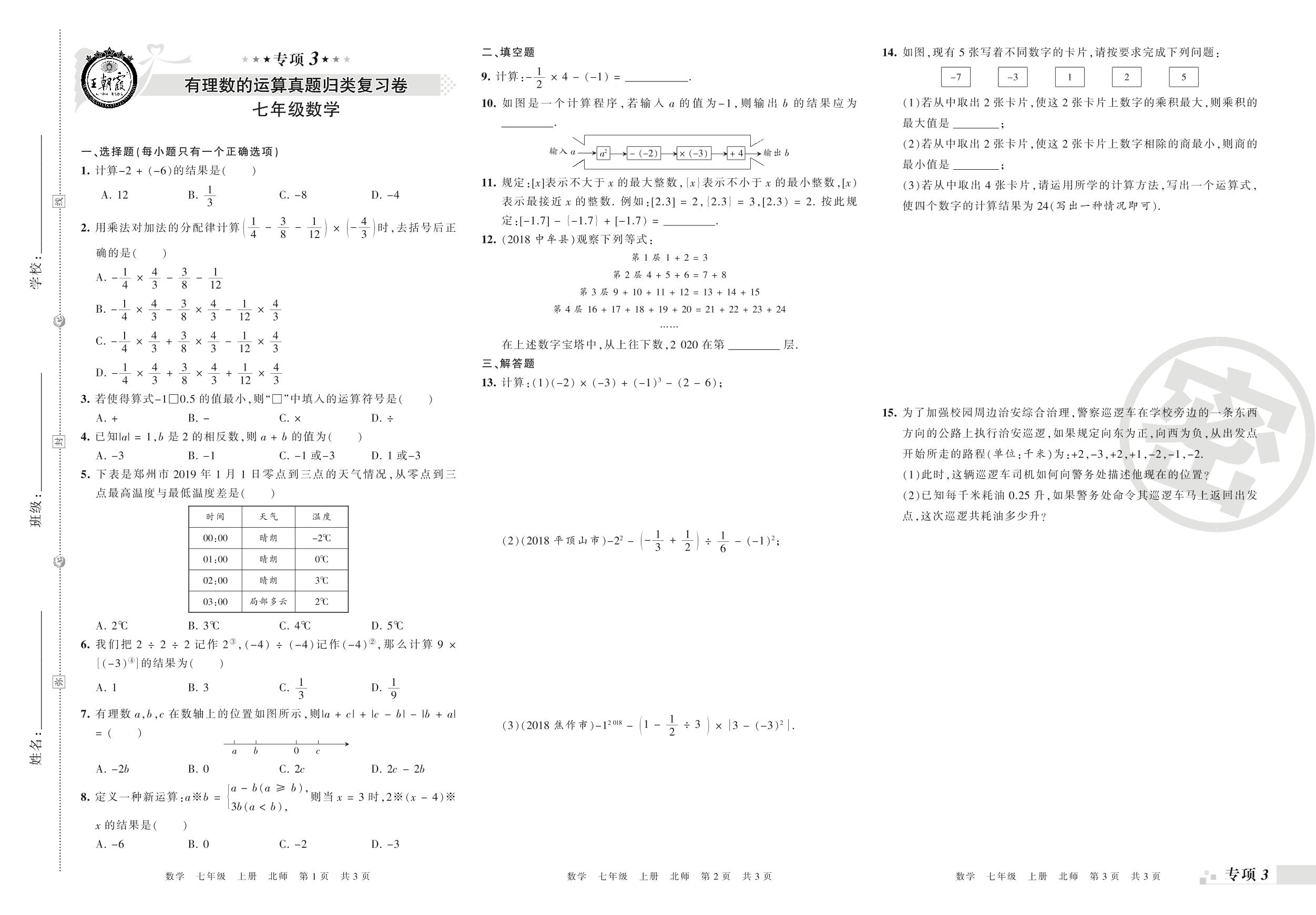 王朝霞期末专项卷——有理数的运算、整式及其加减真题归类复习七年级上册数学(北师版)_R210805161635【0】
