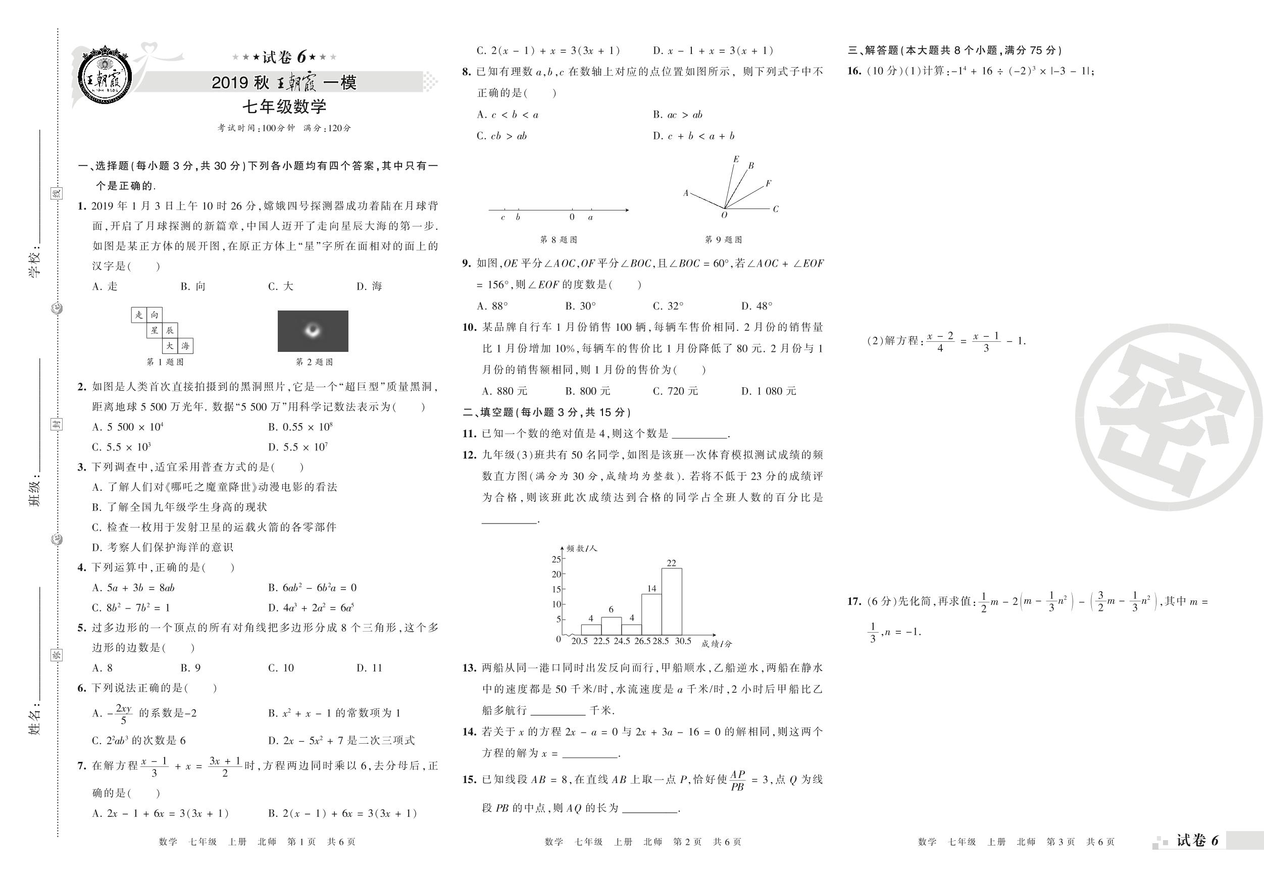 王朝霞期末模拟卷七年级上册数学(北师版)_R210805161716【6】