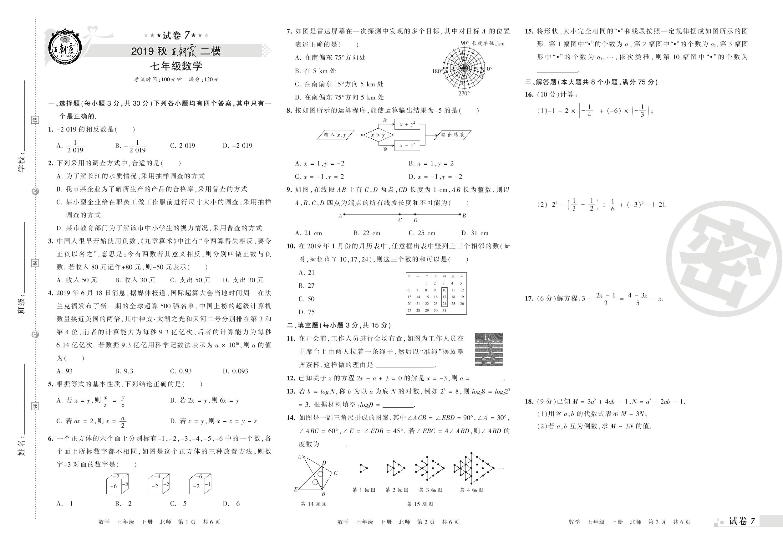 王朝霞期末模拟卷七年级上册数学(北师版)_R210805161721【7】