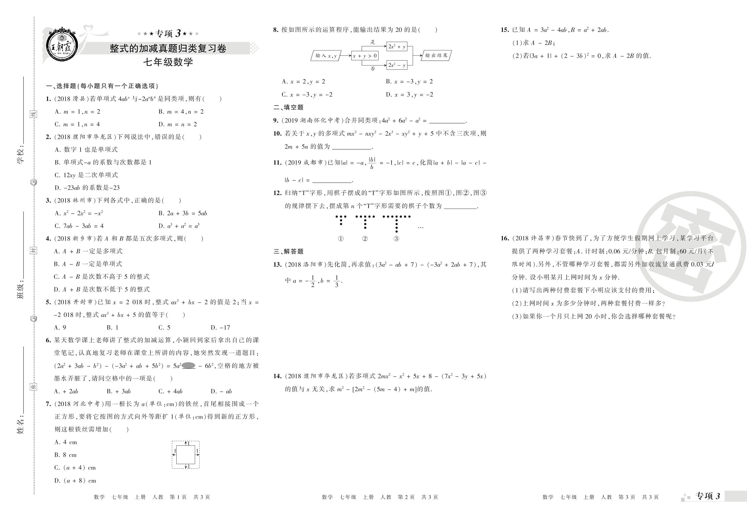 王朝霞期末专项卷——整式的加减、一元一次方程的认识与解法真题归类复习七年级上册数学(人教版)_R210805161737【0】