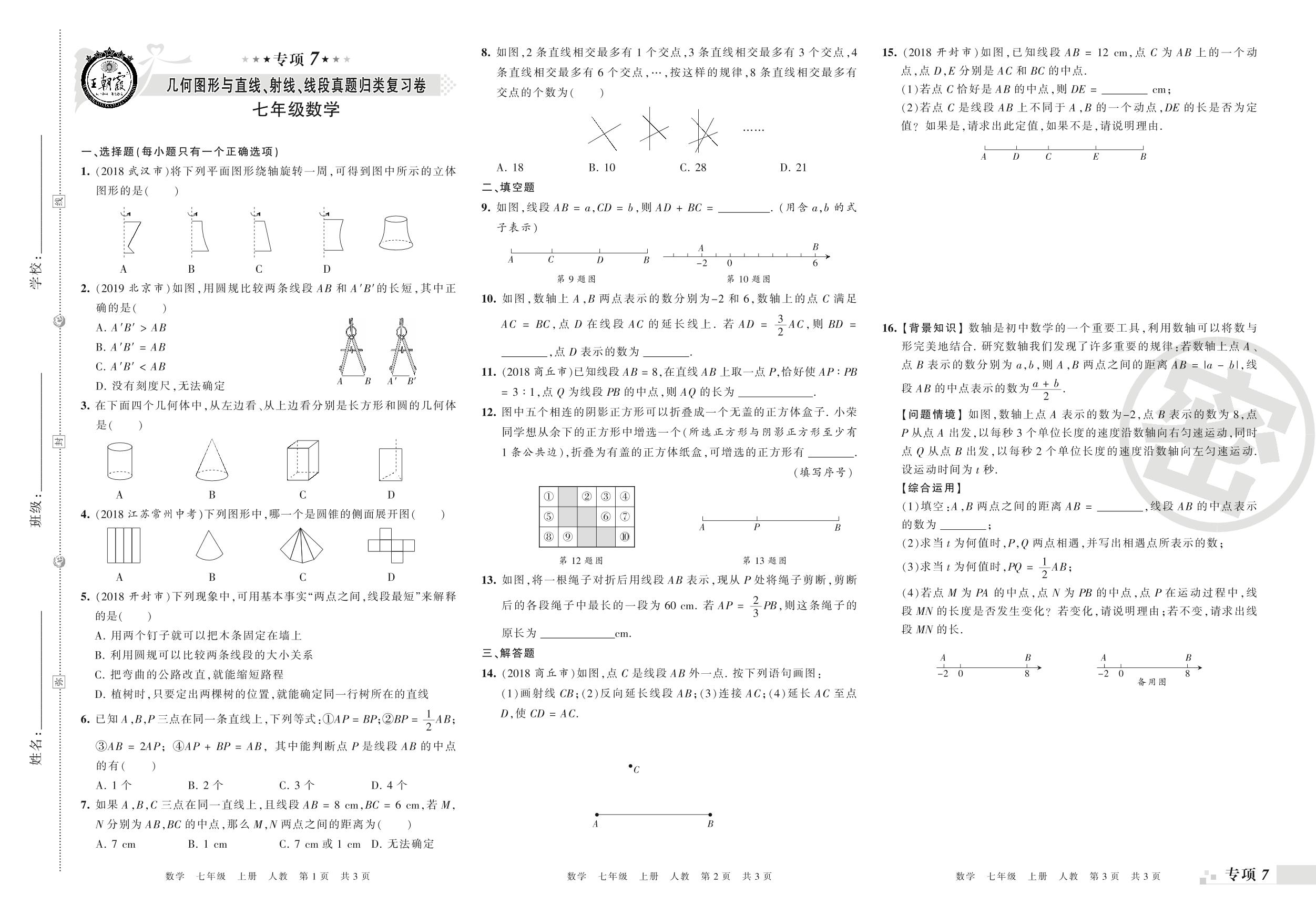 王朝霞期末专项卷——几何图形与直线、射线、线段、角真题归类复习七年级上册数学(人教版)_R210805161746【0】