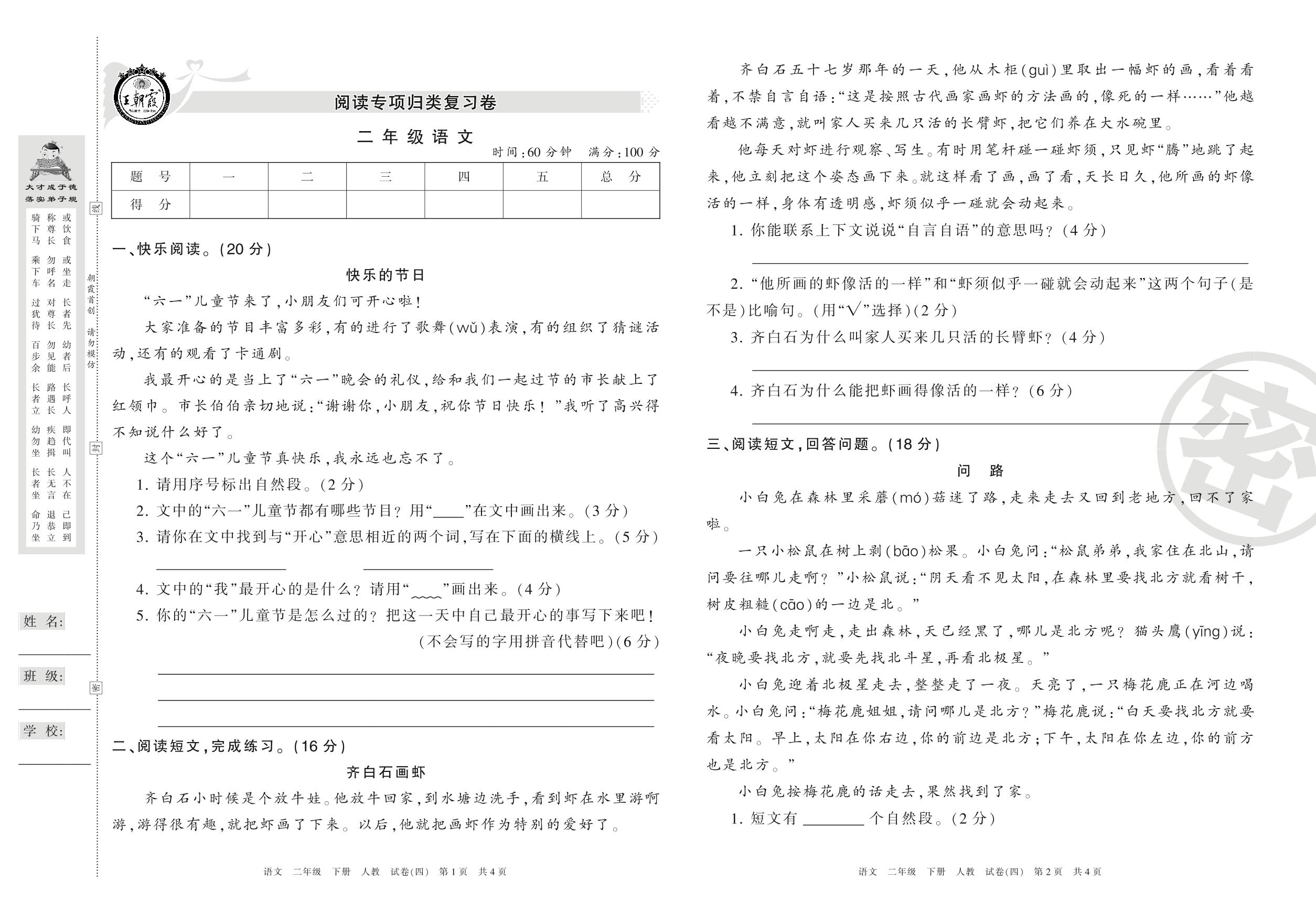 王朝霞期末专项卷二年级下册语文(人教版)_R21080173833【4】