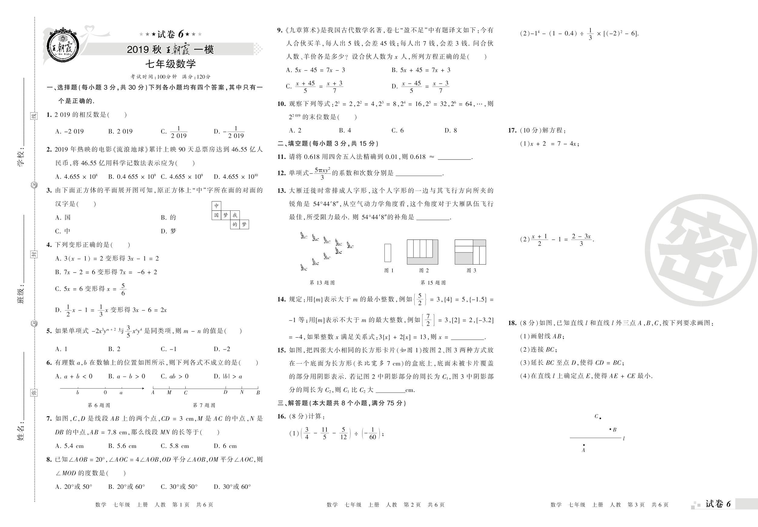 王朝霞期末模拟卷七年级上册数学(人教版)_R210805161807【6】