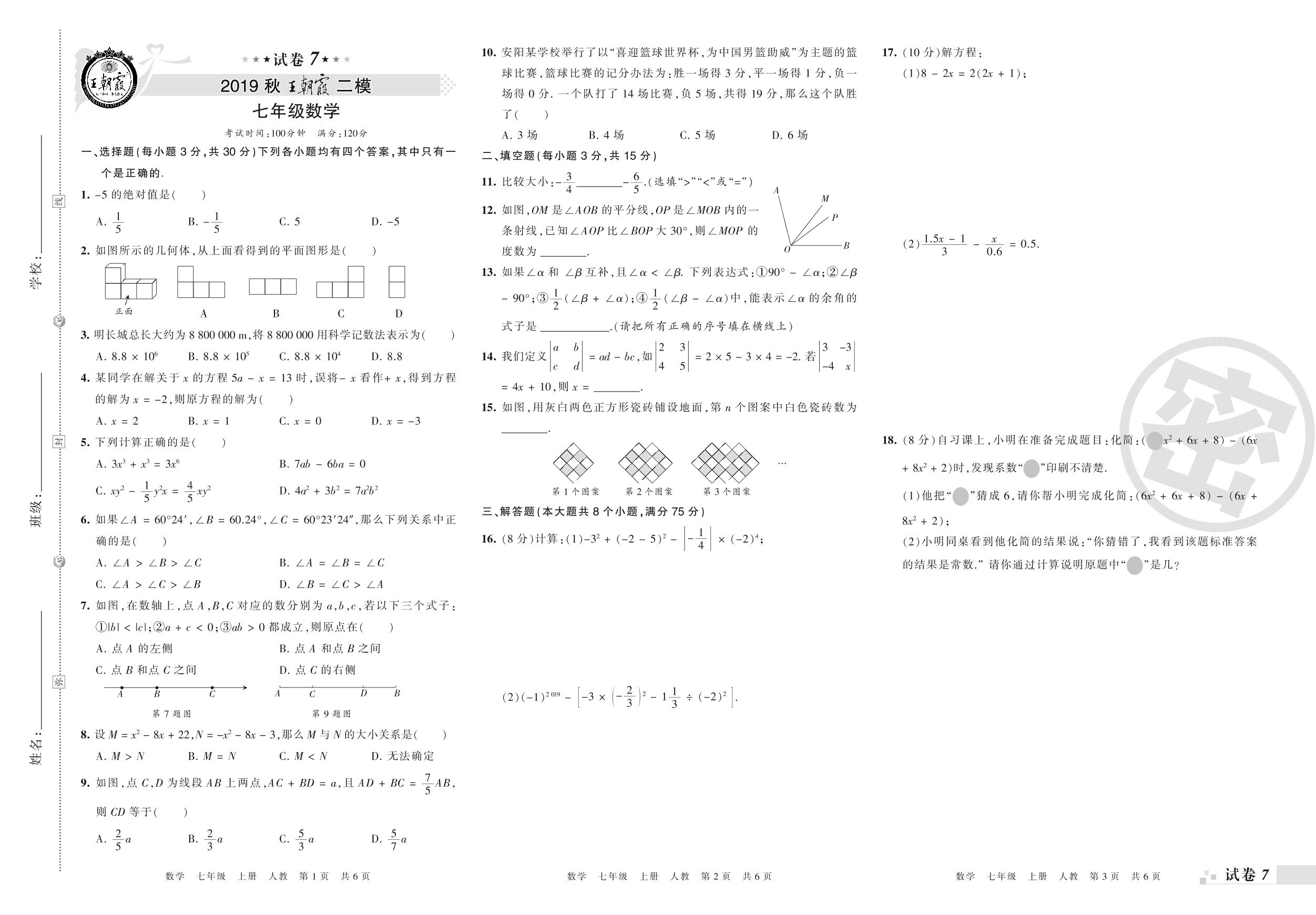 王朝霞期末模拟卷七年级上册数学(人教版)_R210805161815【7】