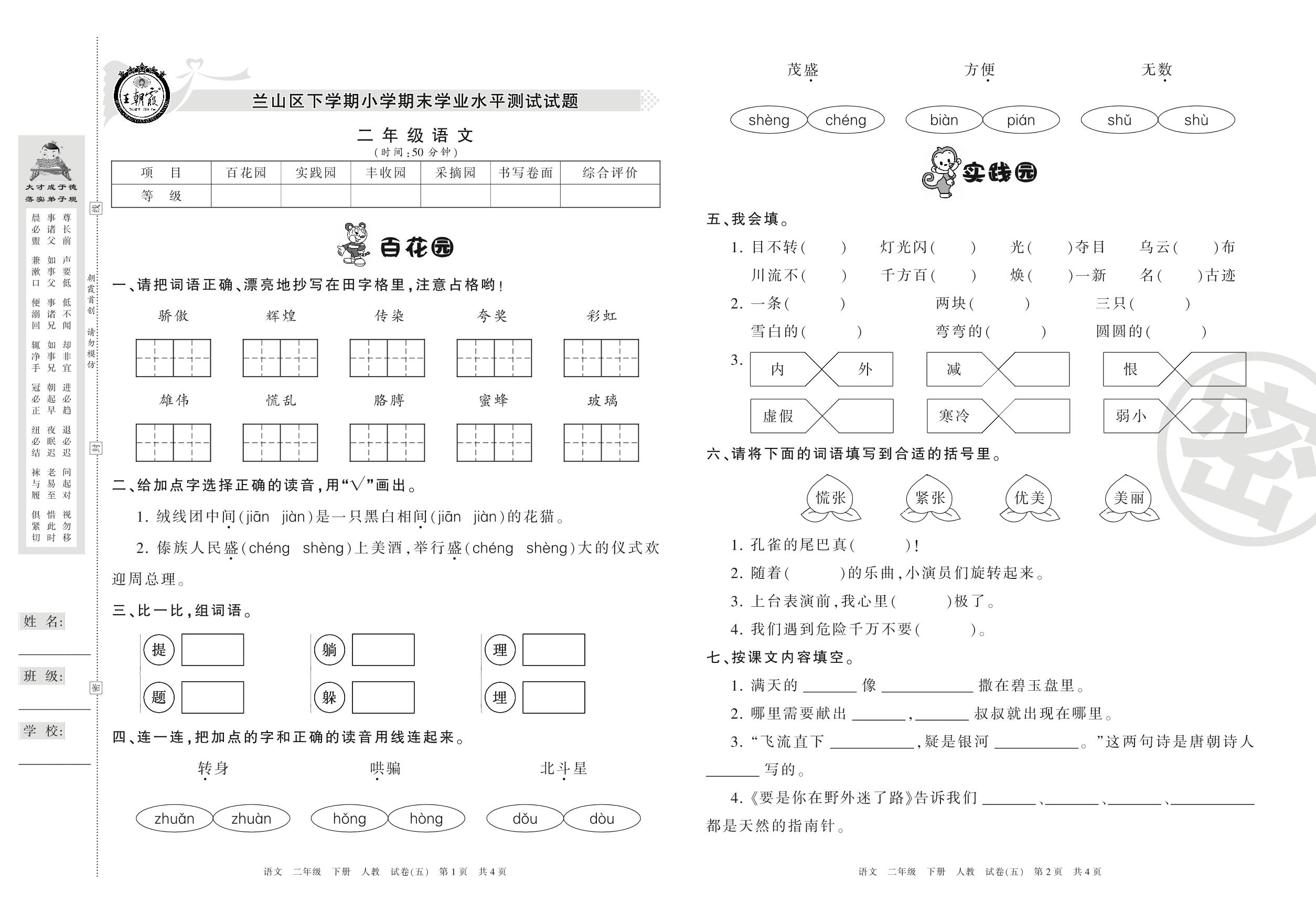 2015-2016学年第二学期临沂市兰山区二年级语文试卷(人教版)【5】