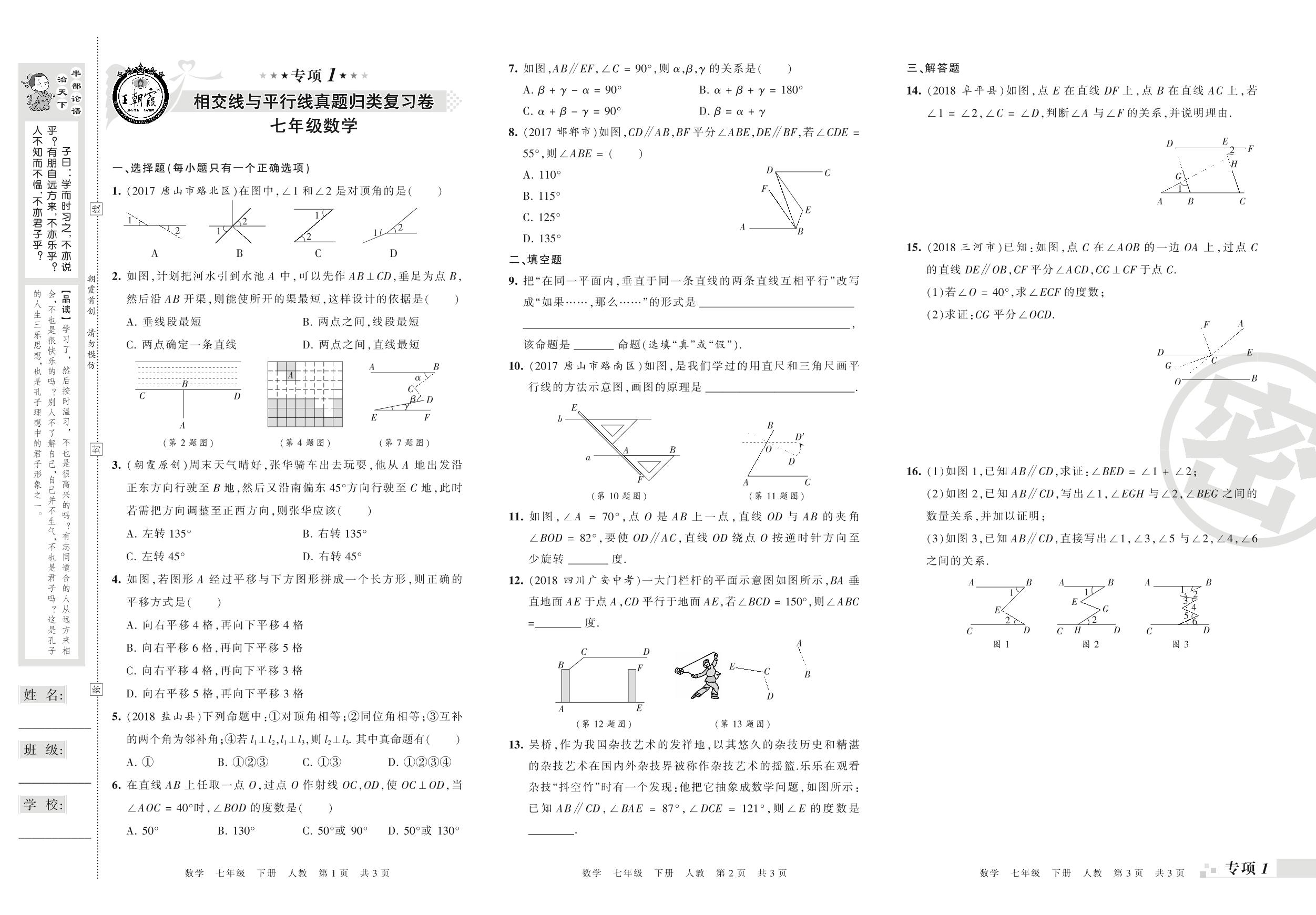 王朝霞期末专项卷——相交线与平行线、实数真题归类复习卷七年级下册数学(人教版)_R210805161920【0】