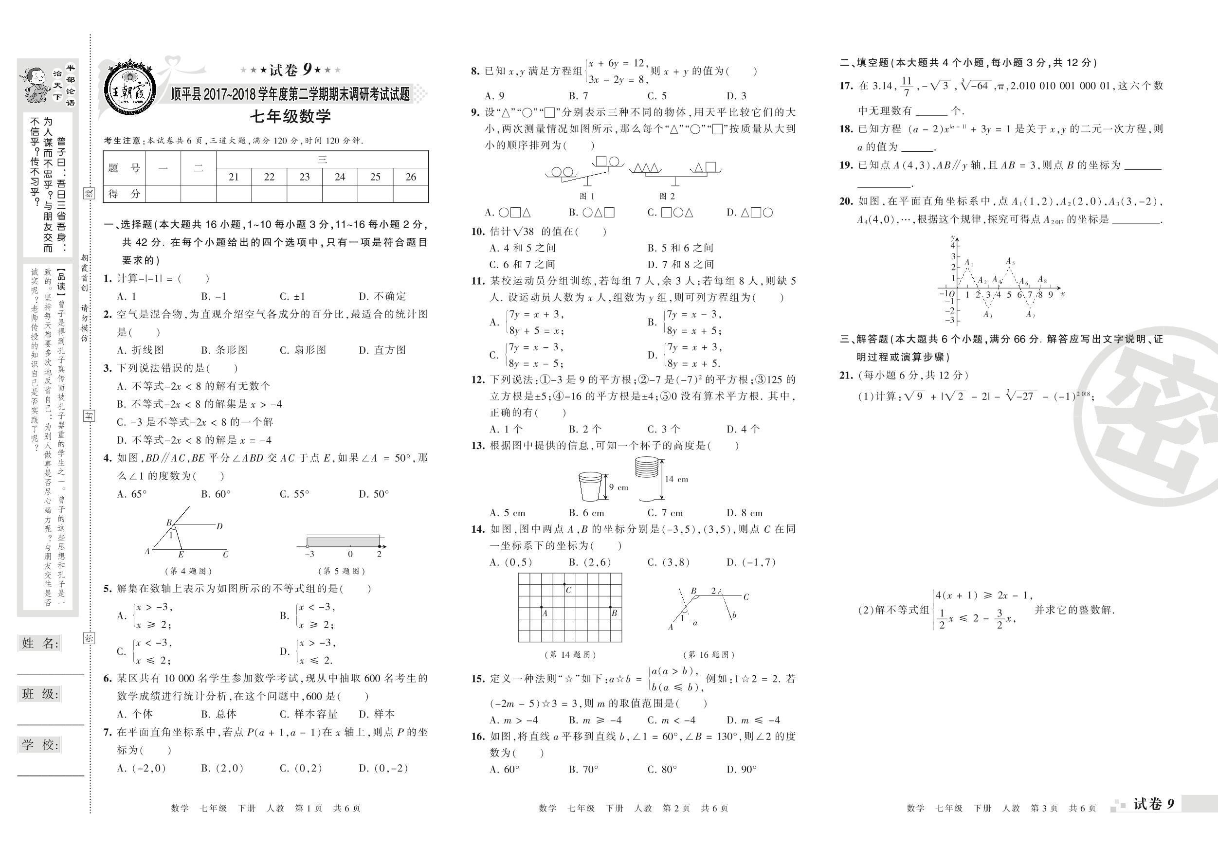 2017-2018学年第二学期保定市顺平县七年级数学试卷(人教版)【9】