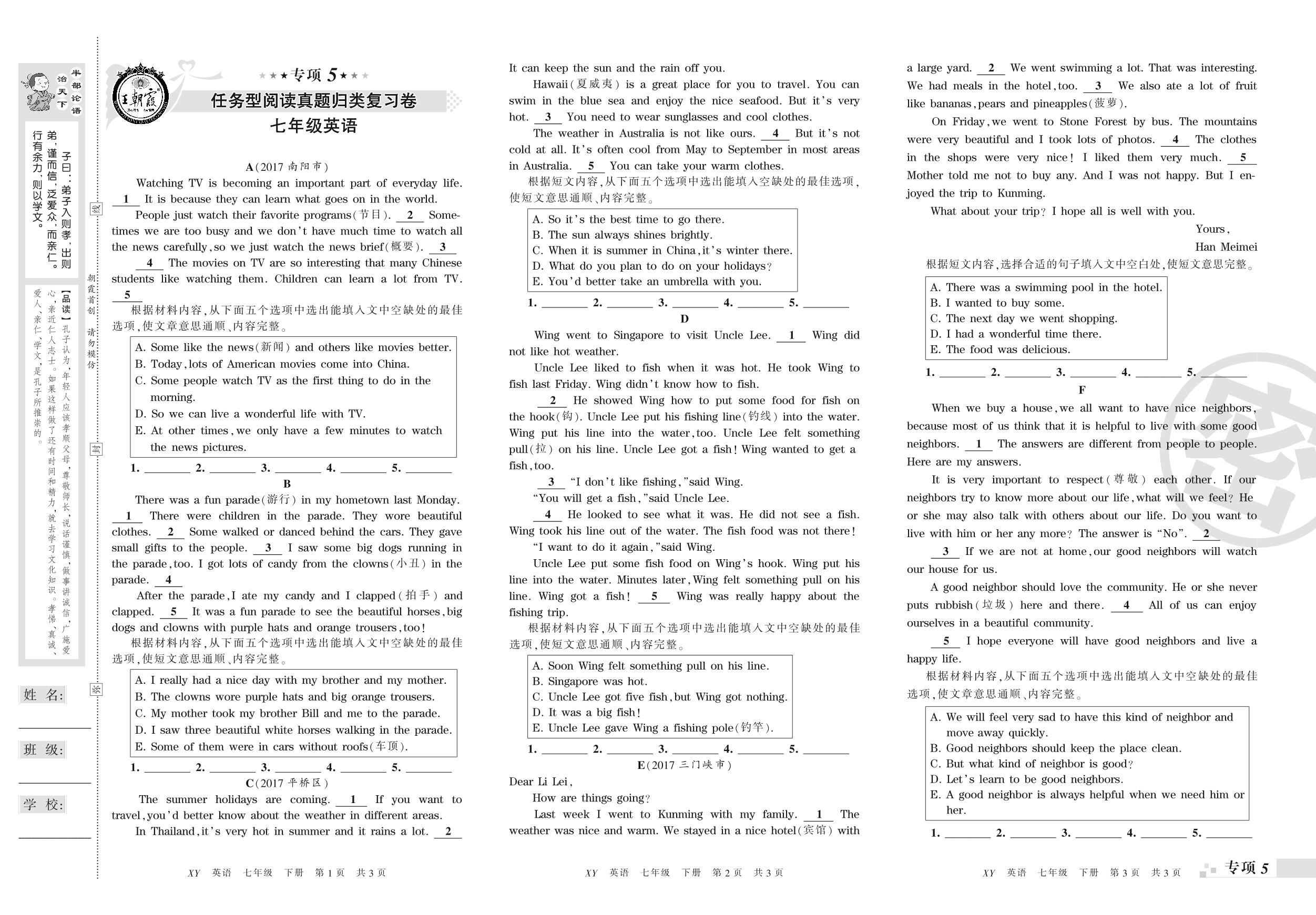 王朝霞期末专项卷——任务型阅读、词语运用真题归类复习卷七年级下册英语(新课版)_R210805162057【0】