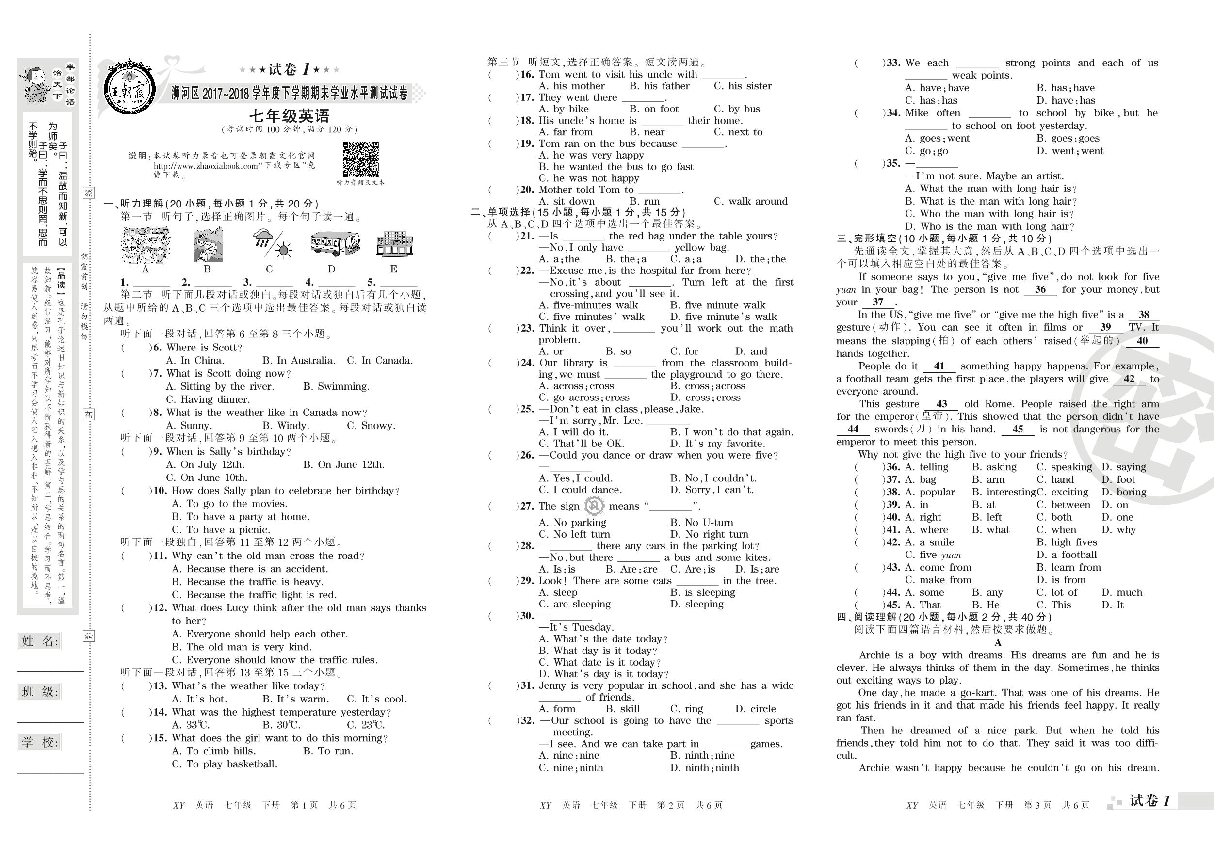 2017-2018学年第二学期信阳市浉河区七年级英语试卷(新课版)【1】