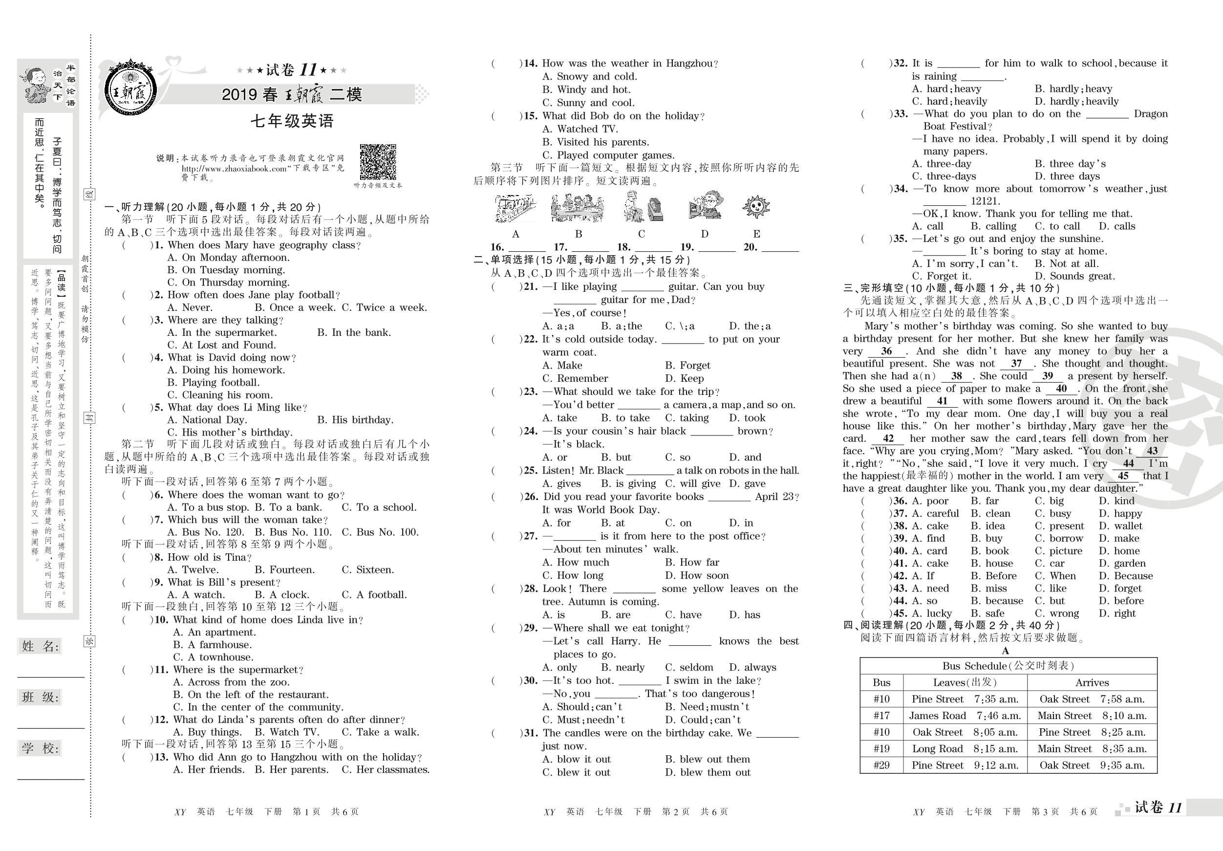 王朝霞期末模拟卷七年级下册英语(新课版)【11】