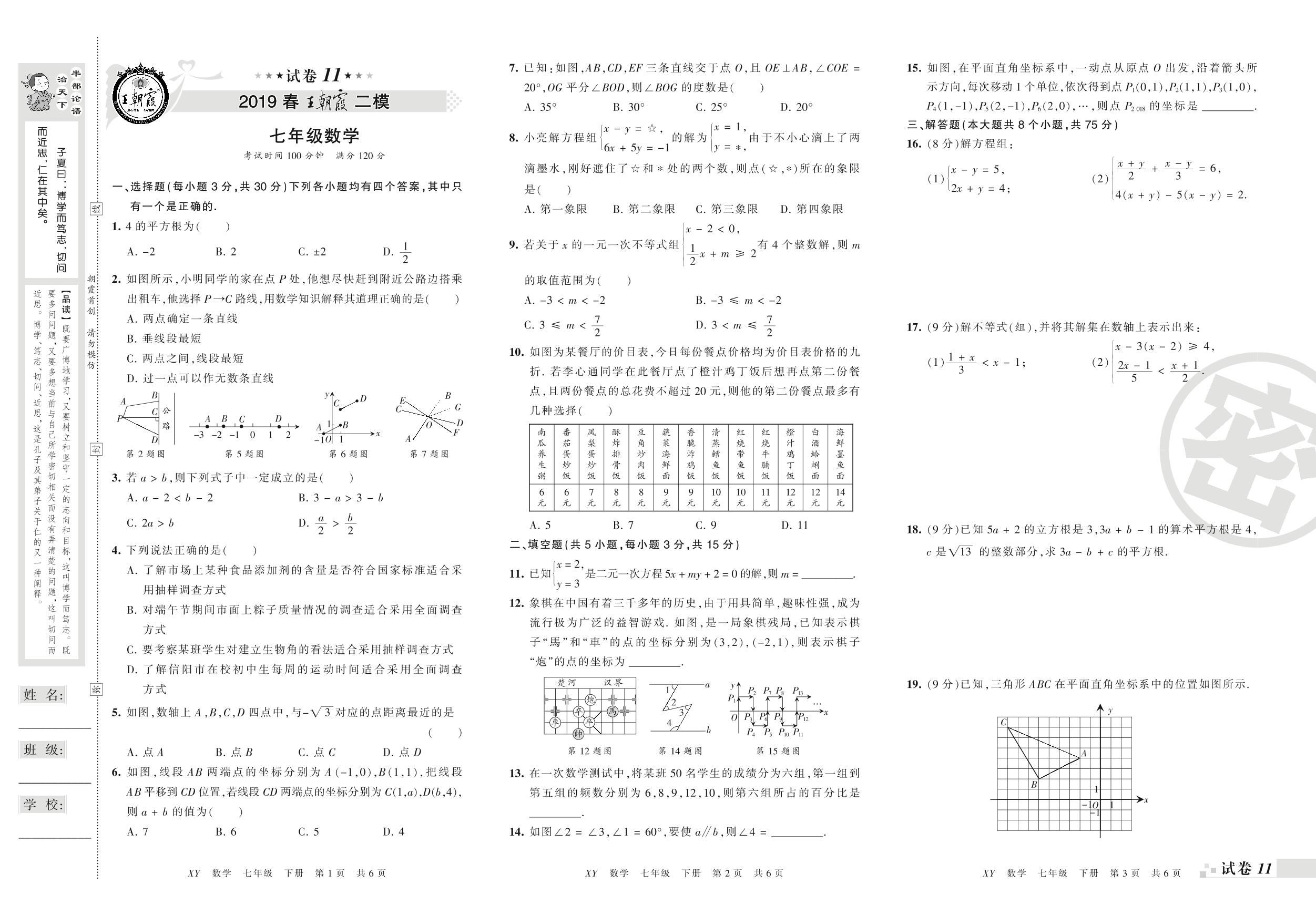 王朝霞期末模拟卷七年级下册数学(人教版)_R210805162329【11】