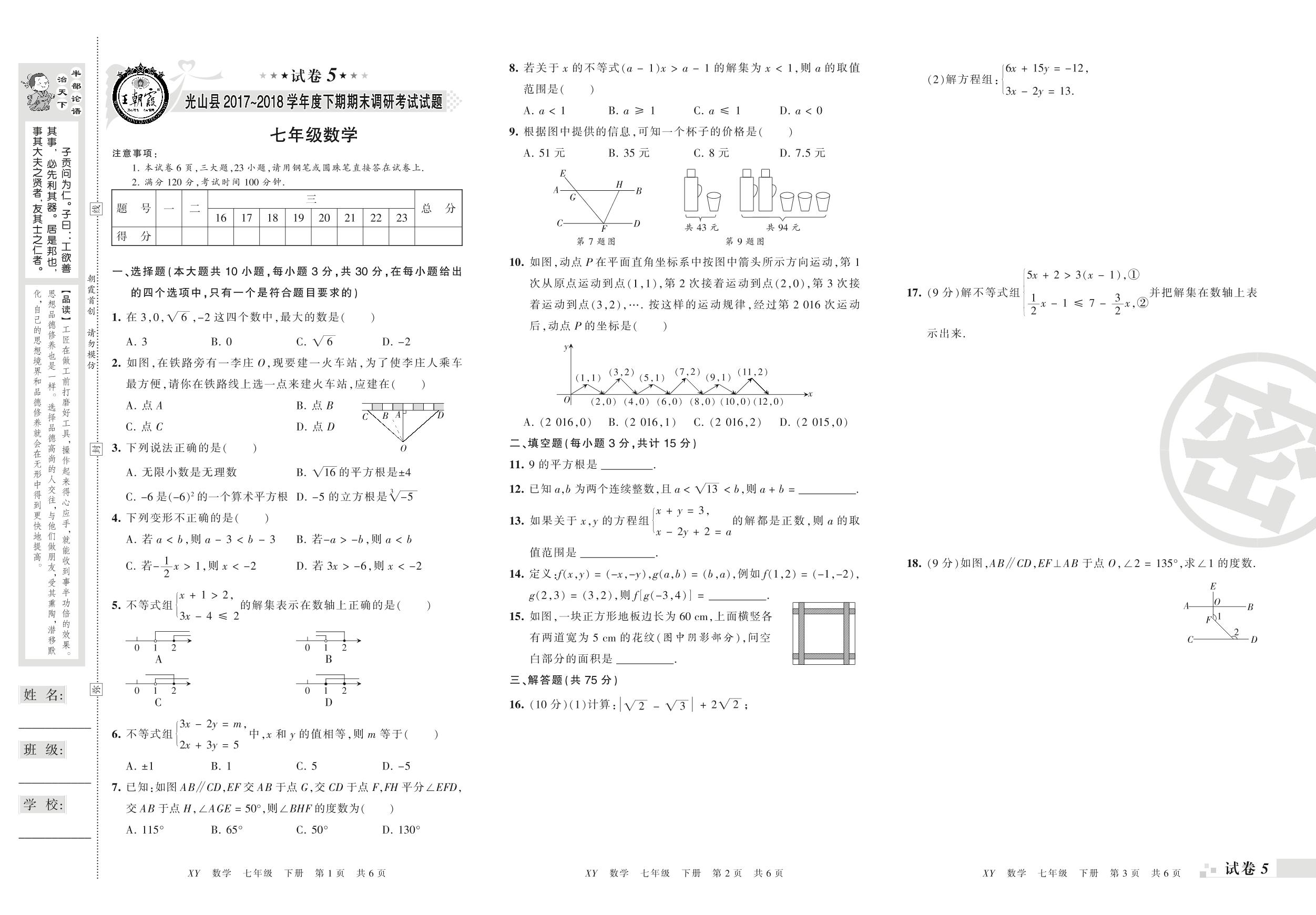 2017-2018学年第二学期信阳市光山县七年级数学试卷(人教版)【5】