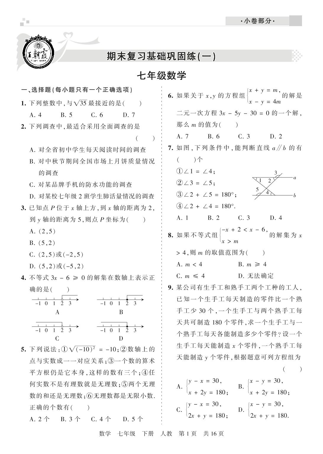 王朝霞期末小卷——期末复习基础巩固练七年级下册数学(人教版)_R210805162439【0】