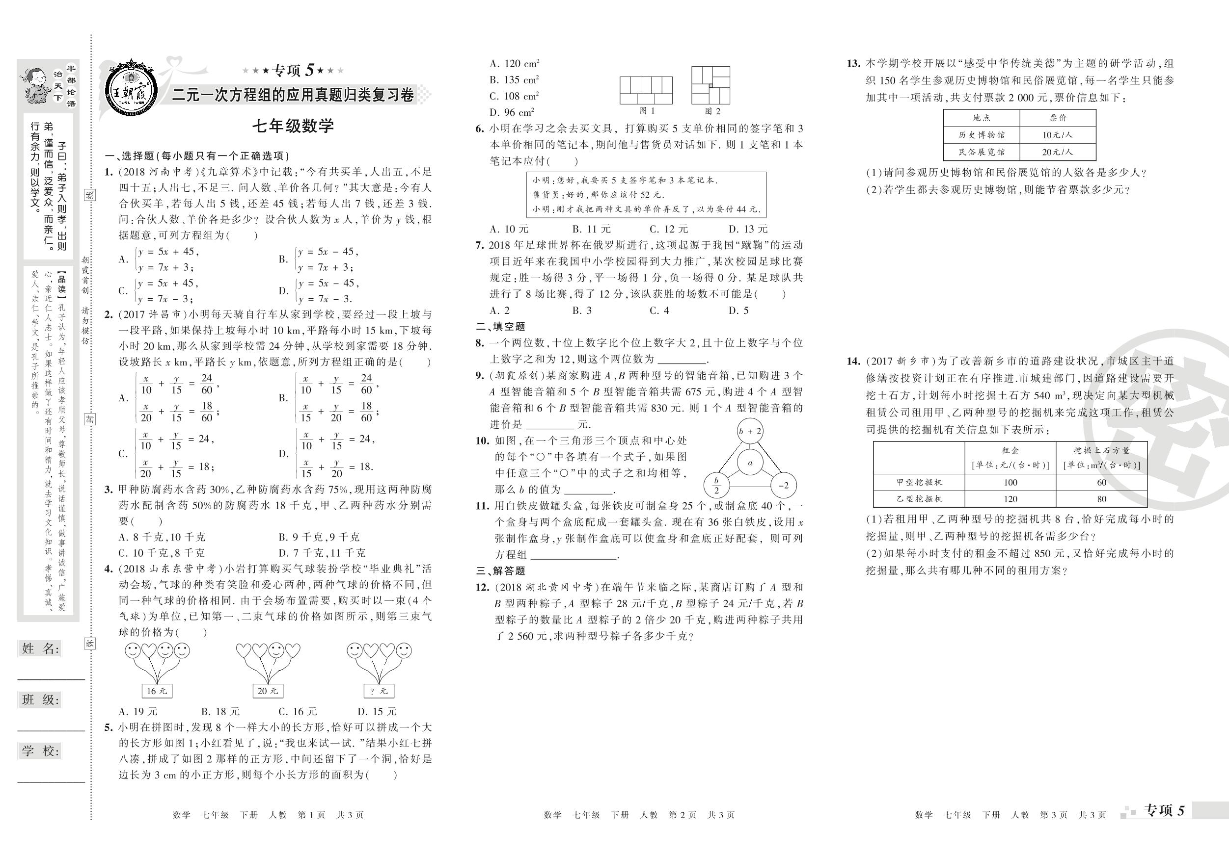 王朝霞期末专项卷——二元一次方程组的应用、不等式与不等式组的认识与解法真题归类复习卷七年级下册数学(人教版)_R210805162501【0】
