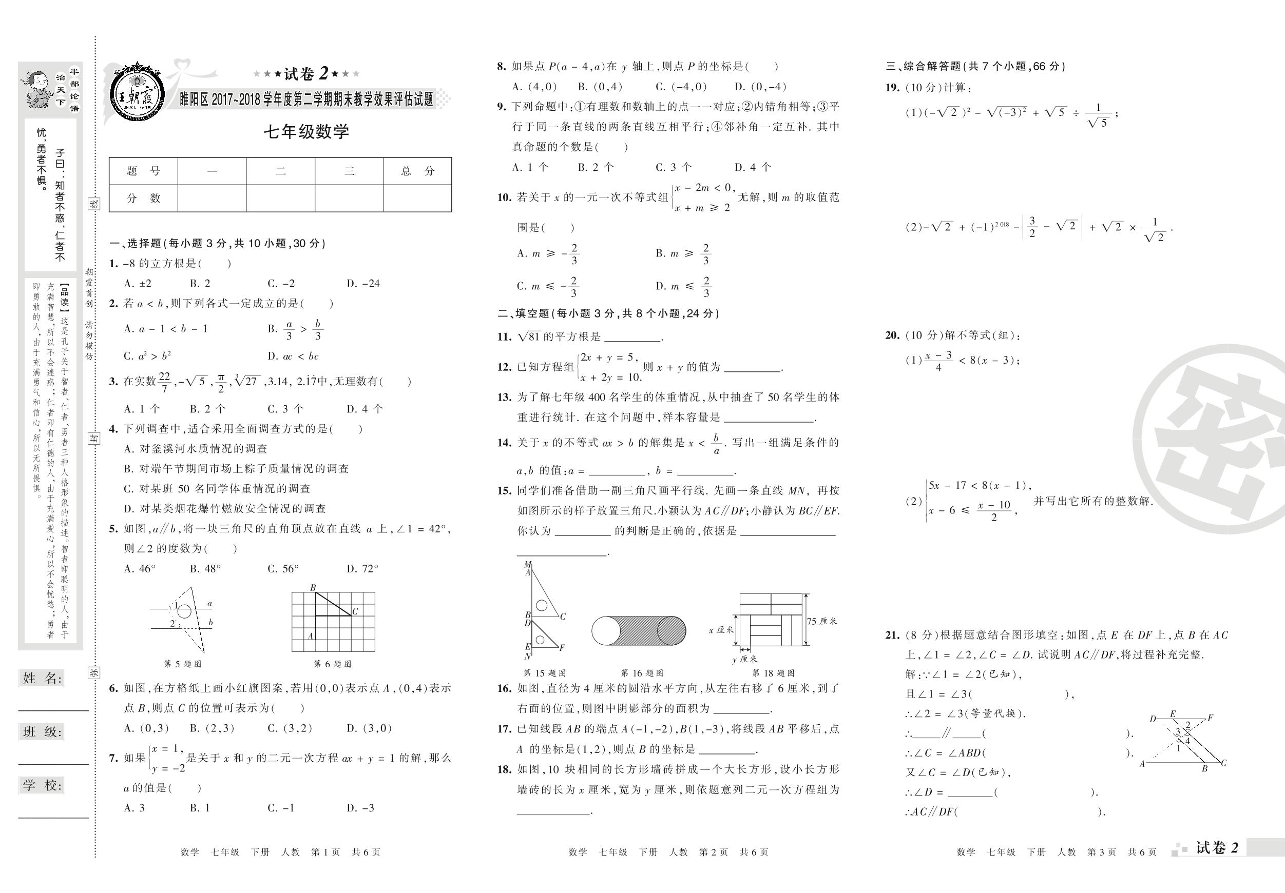 2017-2018学年第二学期商丘市睢阳区七年级数学试卷(人教版)【2】