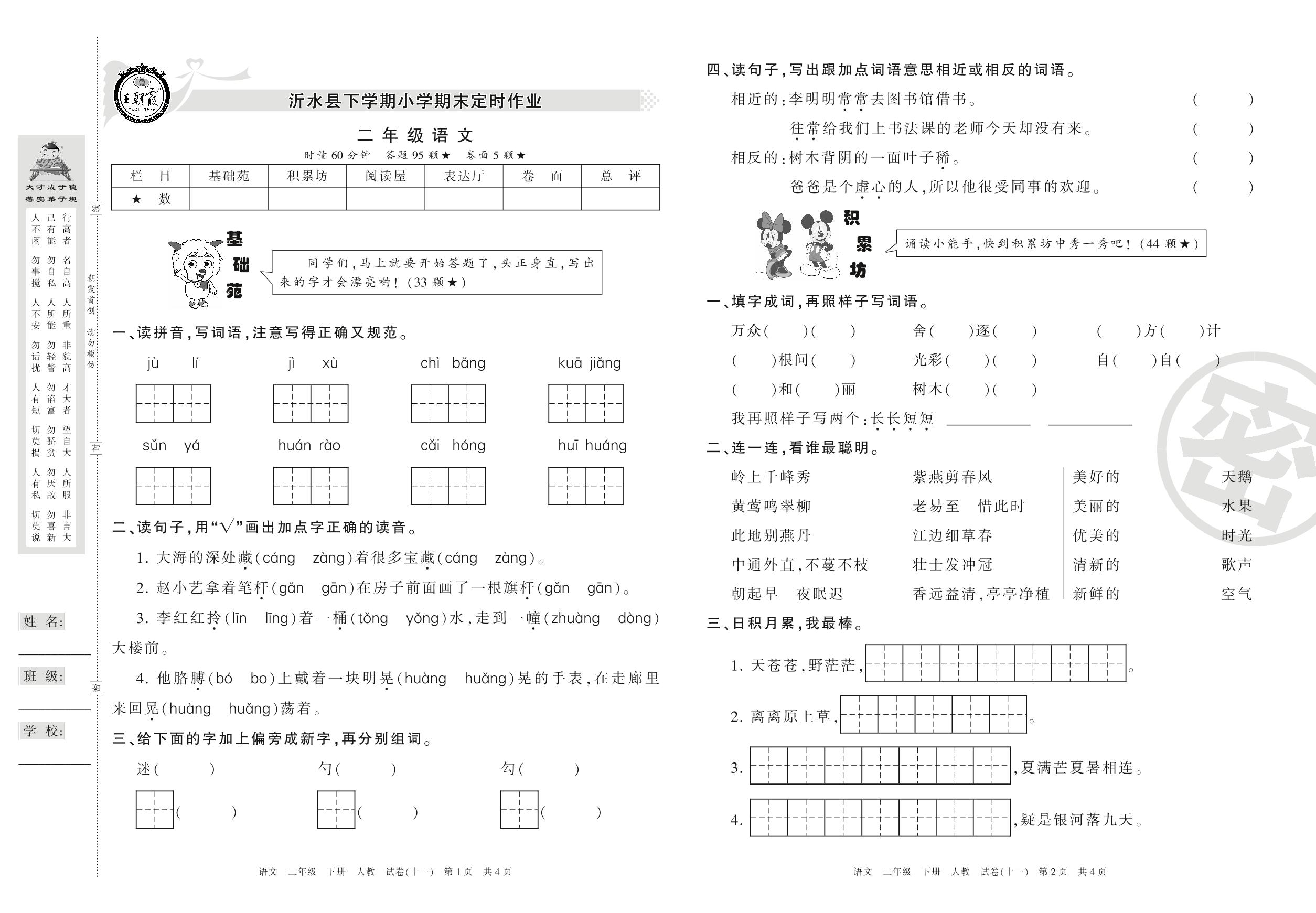 二年级语文人教版下册期末卷