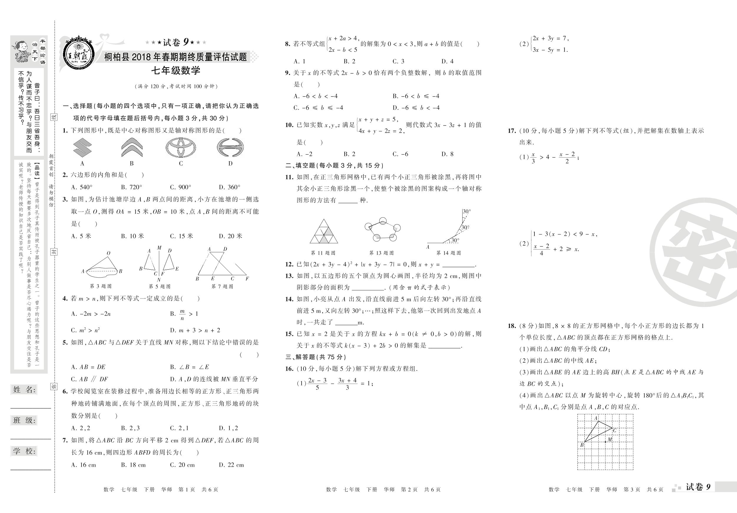 2017-2018学年第二学期南阳市桐柏县七年级数学试卷(华师版)【9】