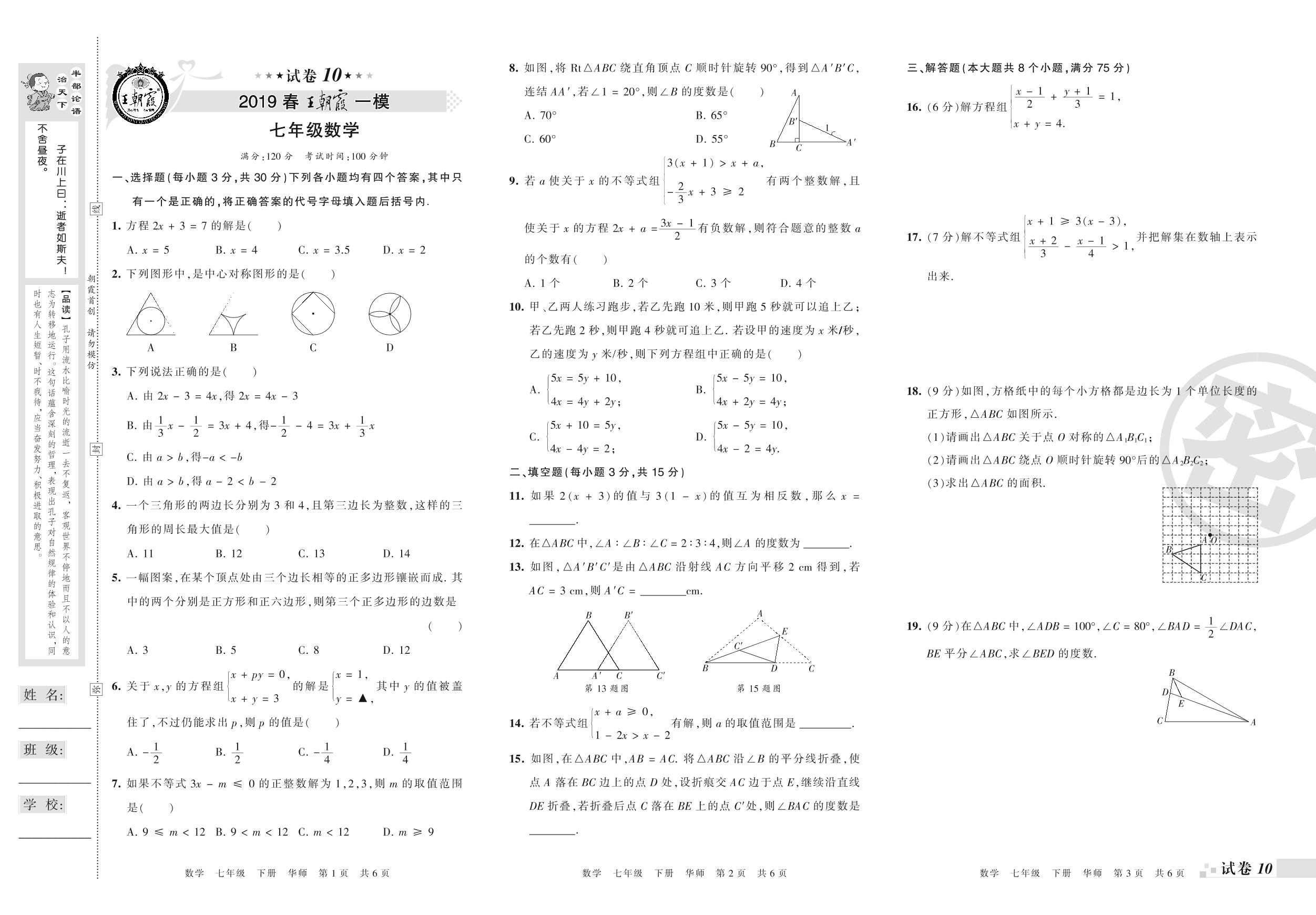 王朝霞期末模拟卷七年级下册数学(华师版)_R210805162704【10】