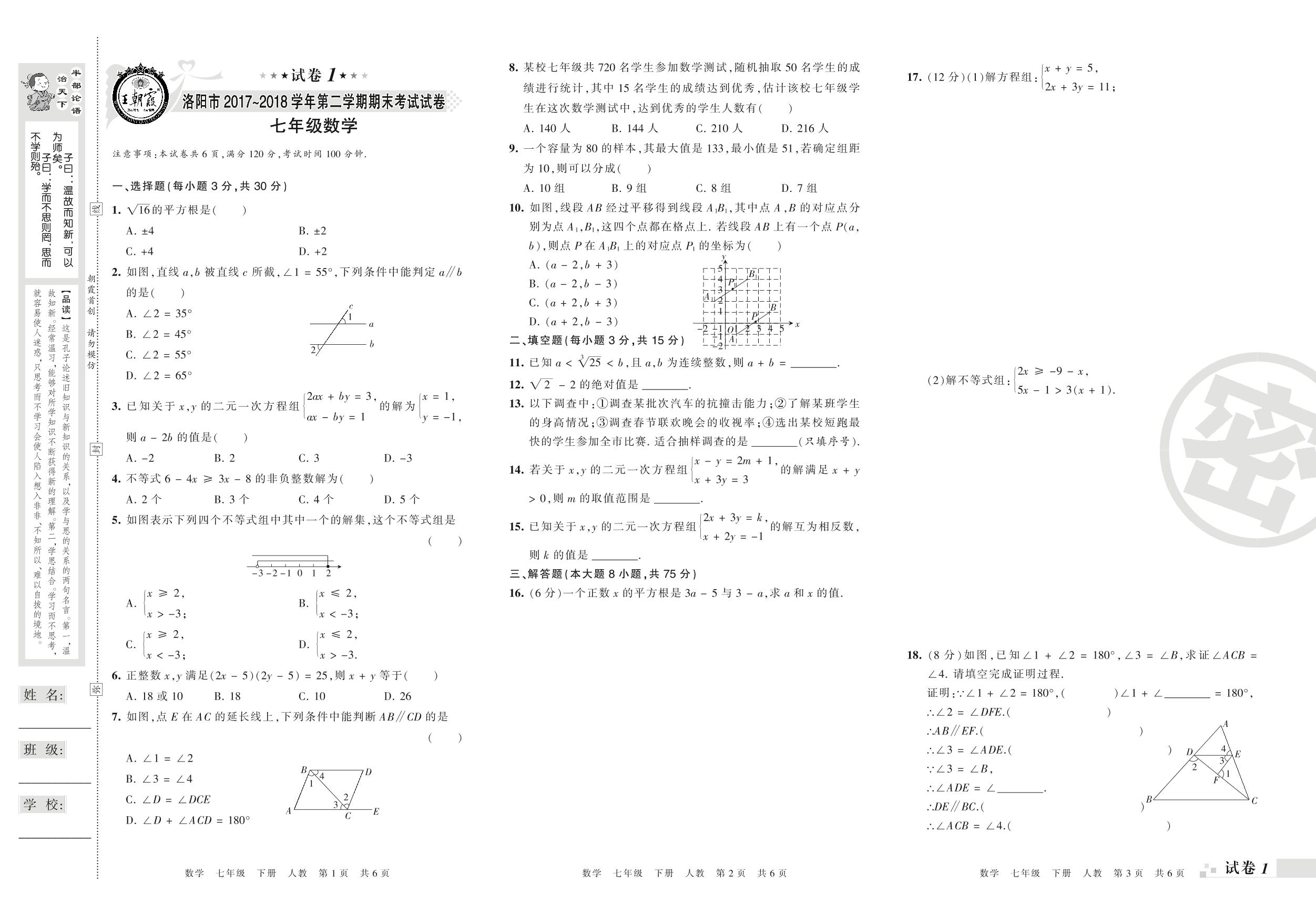 2017-2018学年第二学期洛阳市七年级数学试卷(人教版)_R210805162742【1】