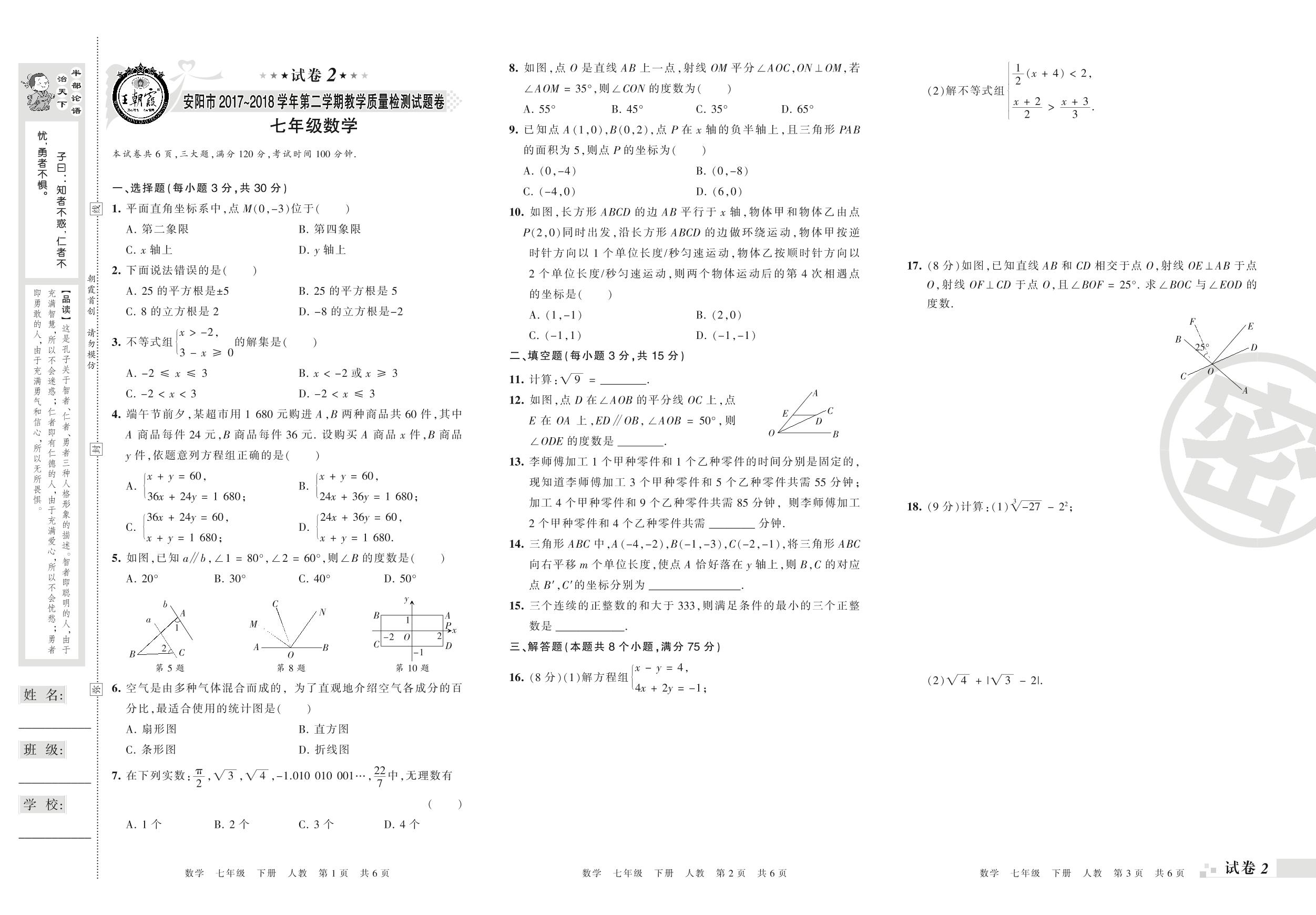 2017-2018学年第二学期安阳市七年级数学试卷(人教版)_R210805162748【2】