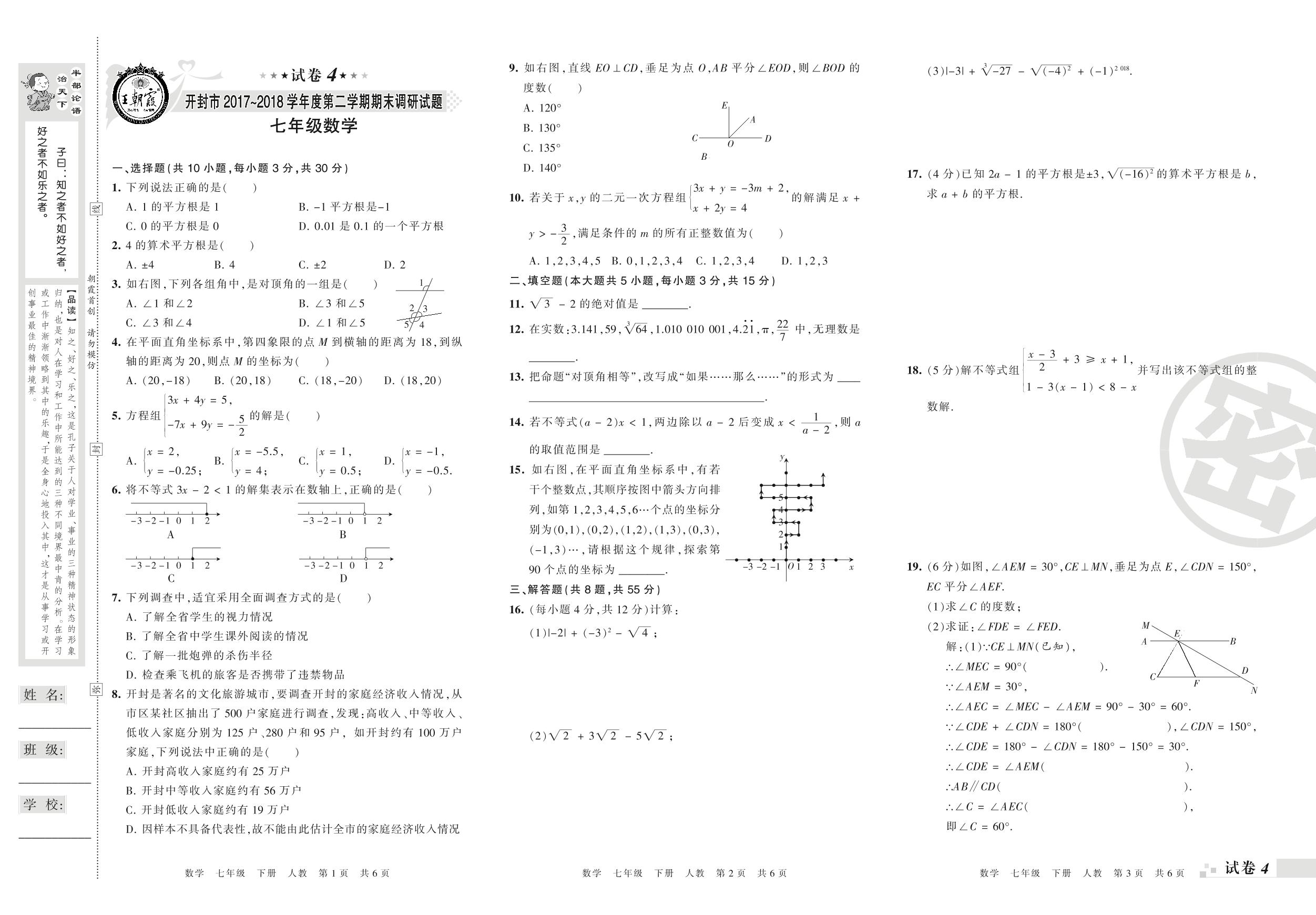 2017-2018学年第二学期开封市七年级数学试卷(人教版)【4】