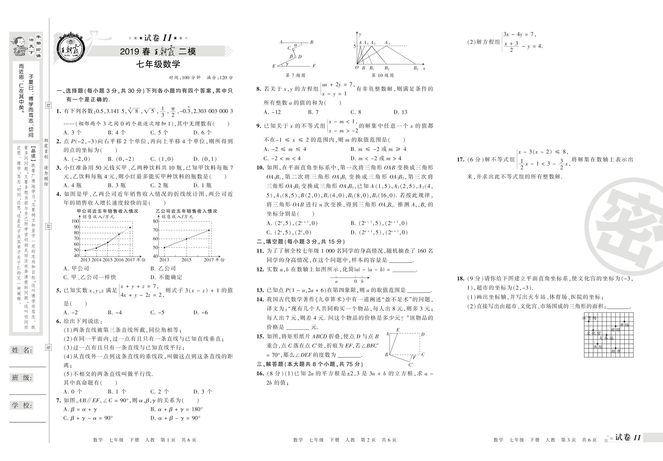 王朝霞期末模拟卷七年级下册数学(人教版)_R210805162847【11】