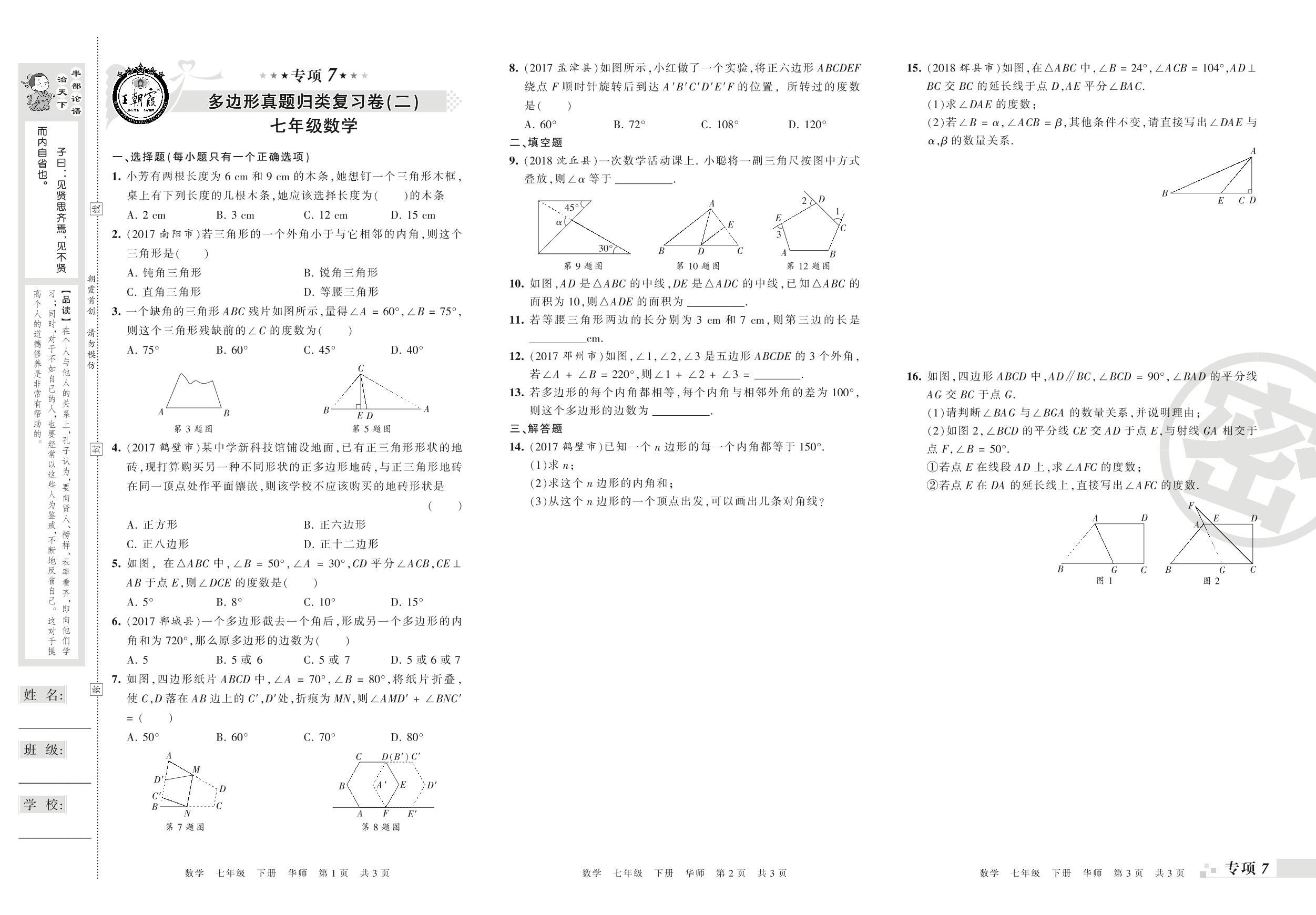 王朝霞期末专项卷——多边形(二) 轴对称、平移与旋转真题归类复习卷七年级下册数学(华师版)_R210805162915【0】