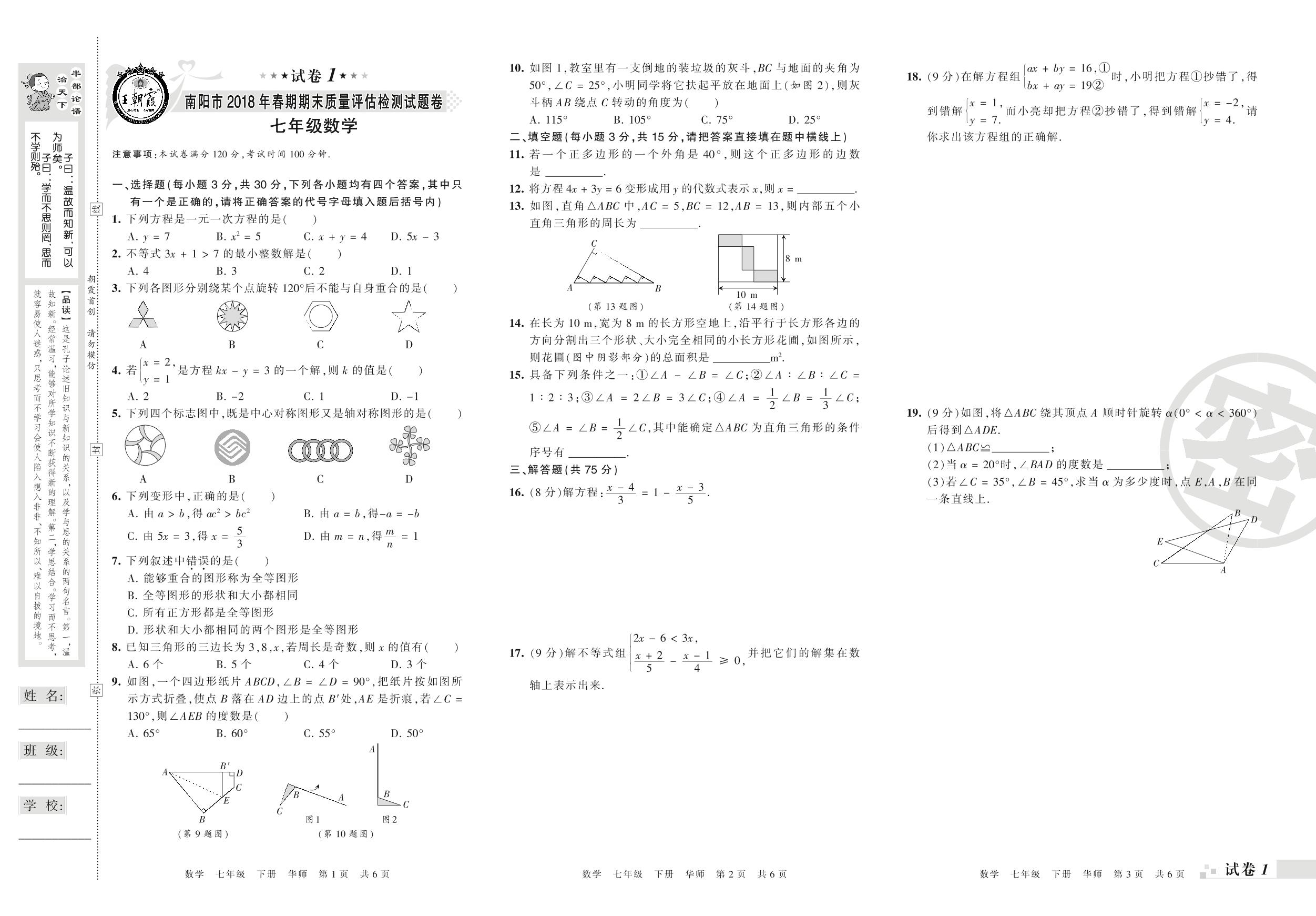 2017-2018学年第二学期南阳市七年级数学试卷(华师版)_R210805162921【1】