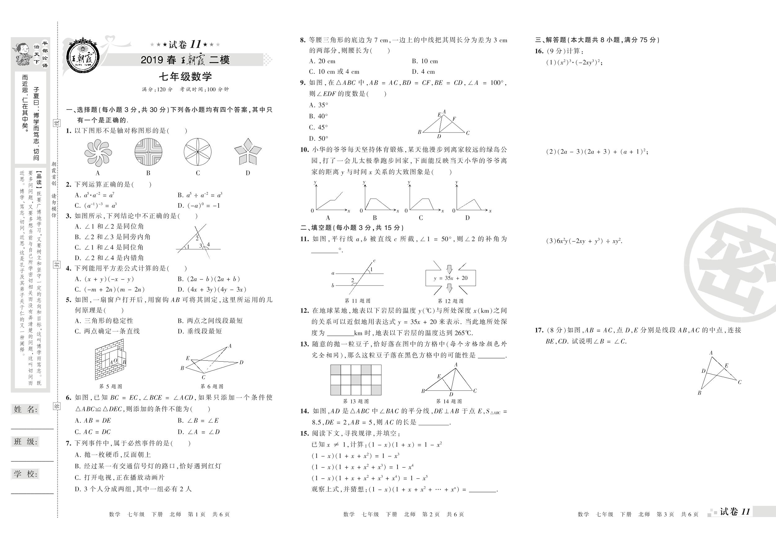 王朝霞期末模拟卷七年级下册数学(北师版)_R210805163054【11】