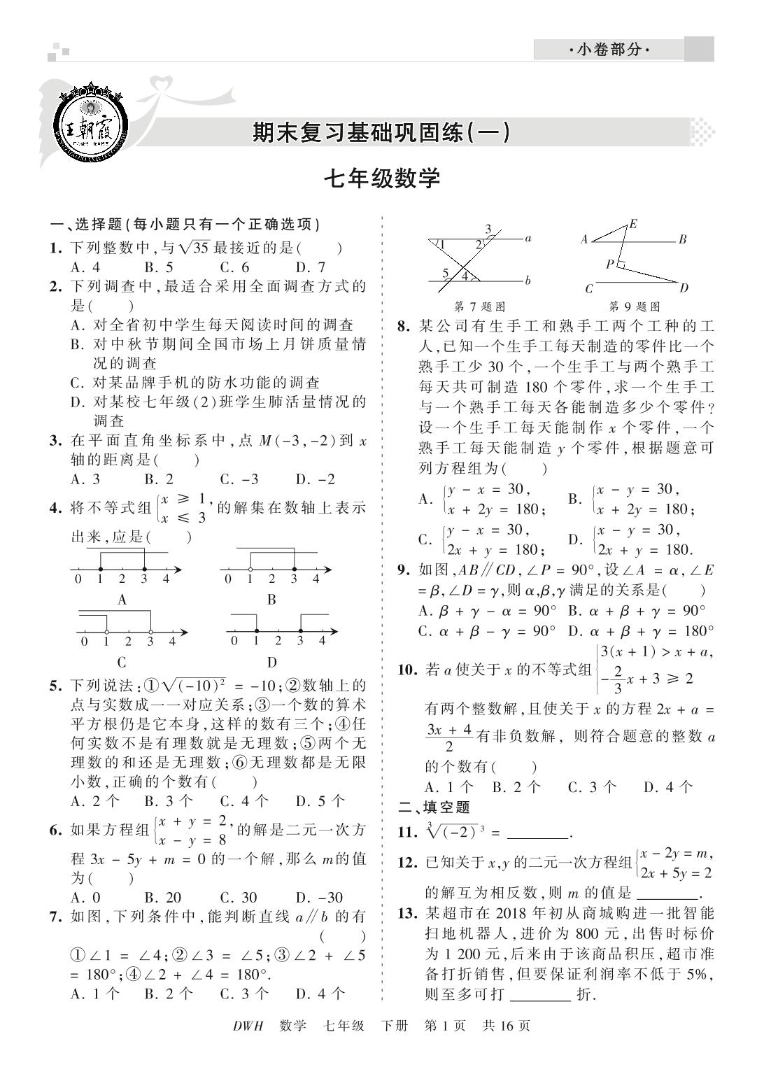 王朝霞期末小卷——期末复习基础巩固练七年级下册数学(人教版)_R210805163142【0】