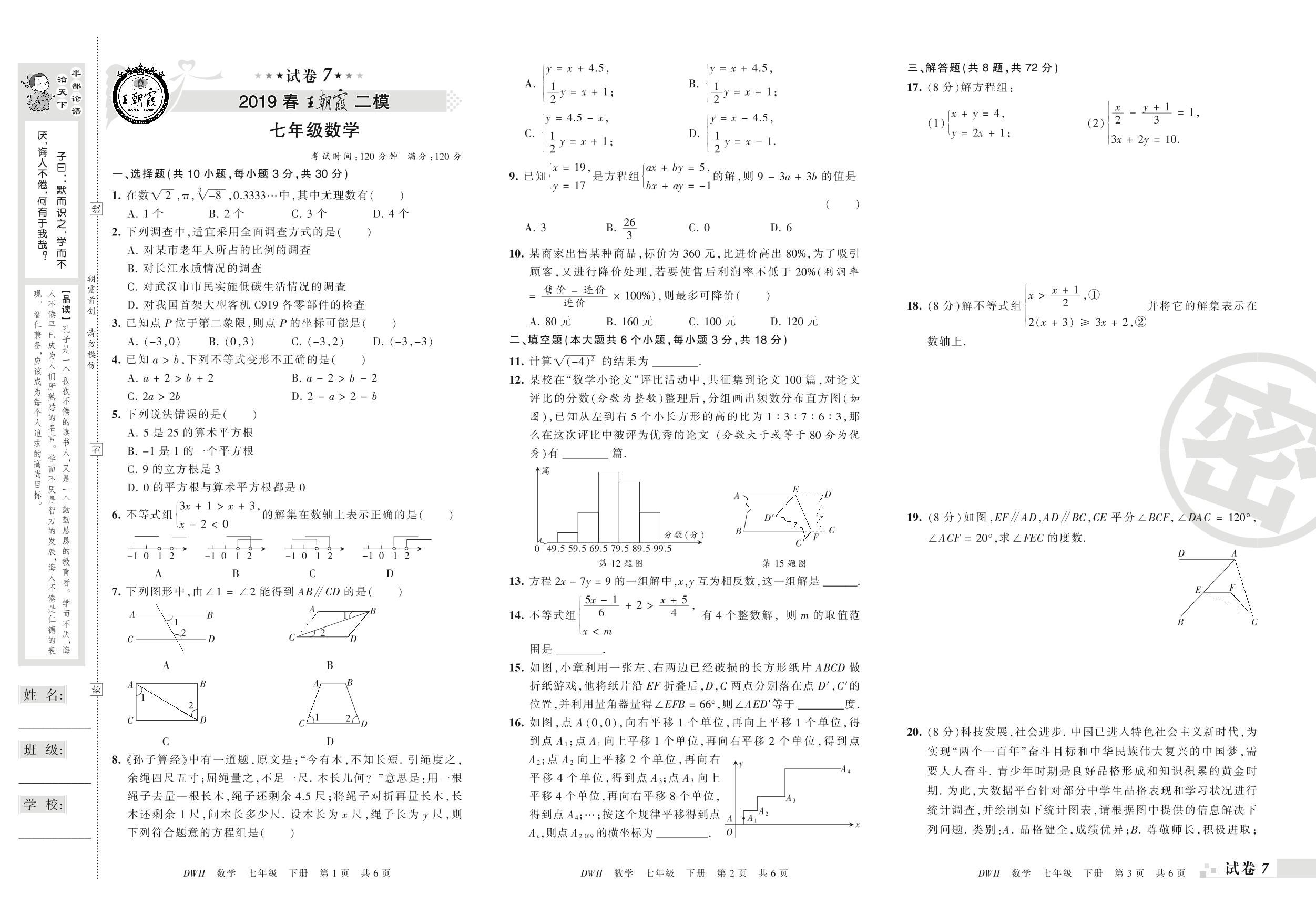 王朝霞期末模拟卷七年级下册数学(人教版)_R210805163251【7】