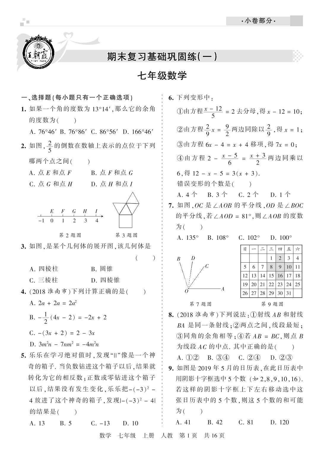 王朝霞期末小卷——期末复习基础巩固练七年级上册数学(人教版)_R210805163258【0】